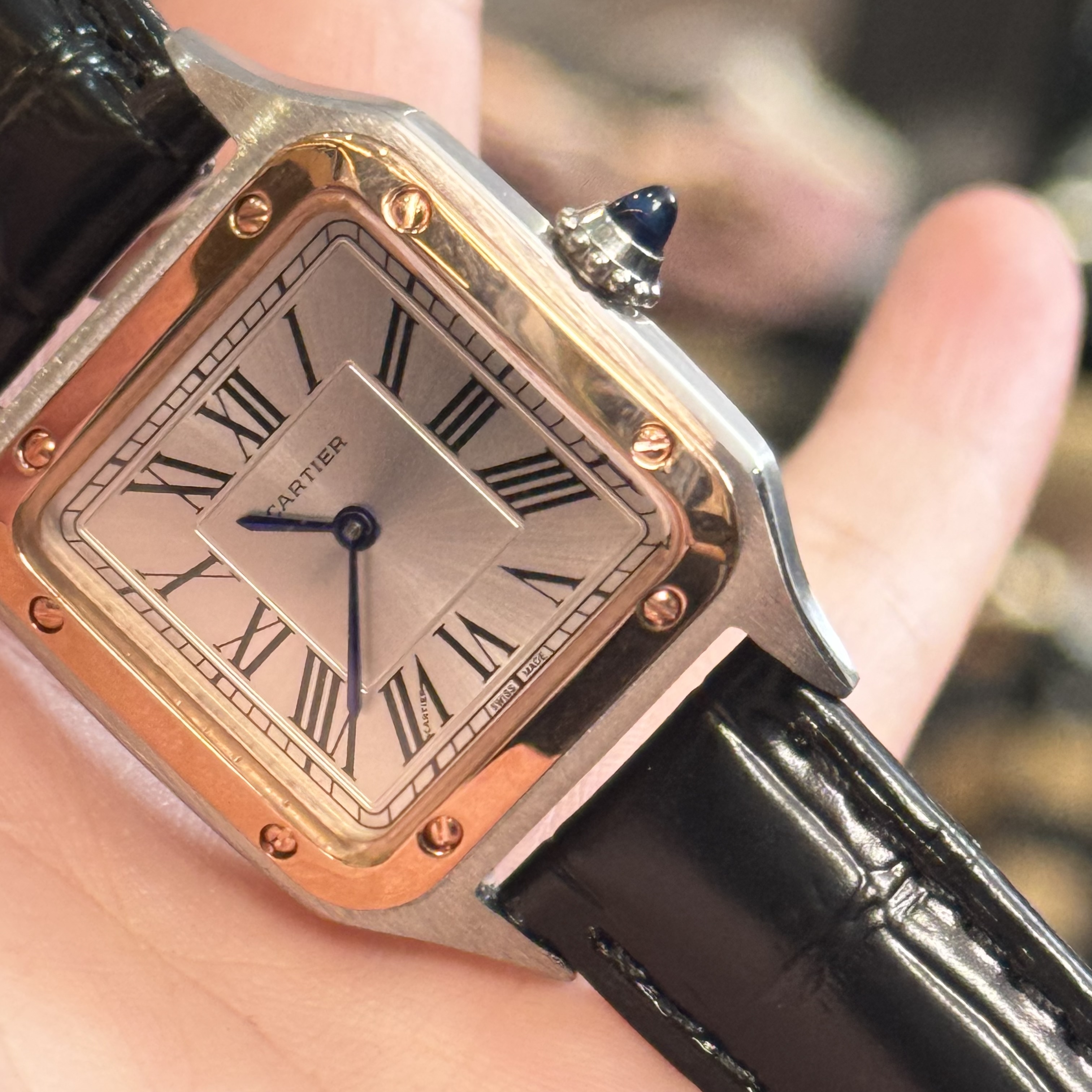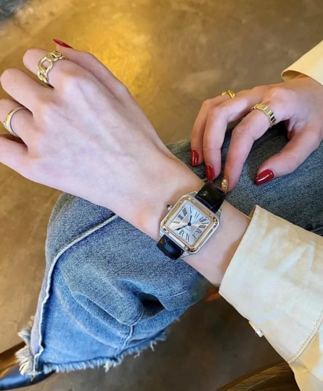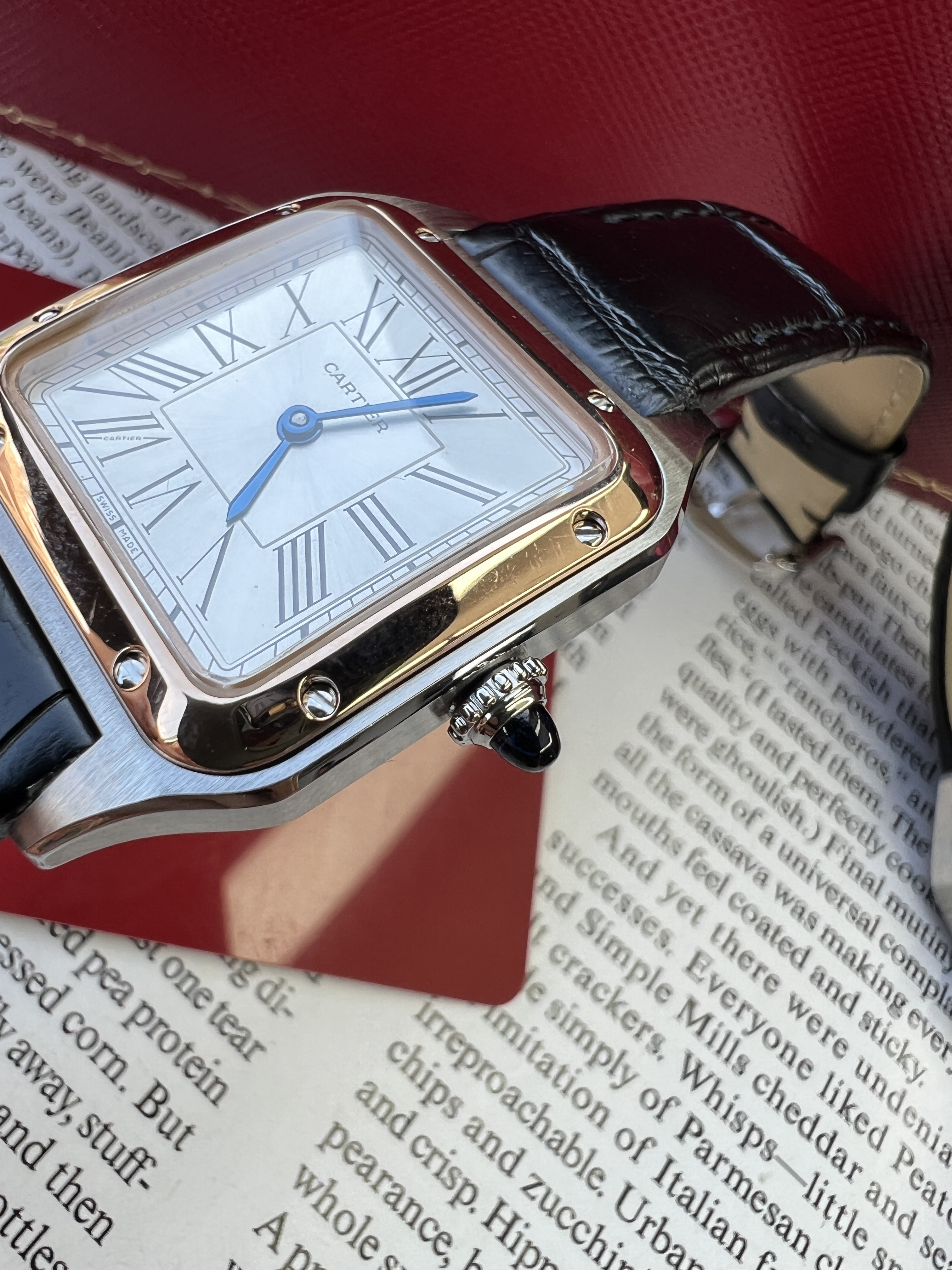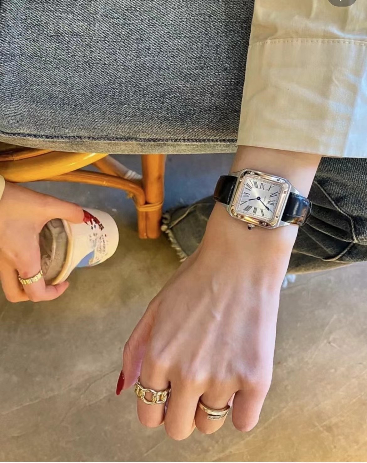 关于品质,关于机芯⬇️凡是说山度士纯zhen'的大家可以把他拉黑名单了,在国内没有任何代工厂的品牌不可能拿到纯成品的,官方售价四万三,我们的货区别在于表壳的材质,zp是chun18k金的,我们的是表层包金工艺,但是外观上是没有任何区别的,且字体依然是750的标志,并且这个款是买了原版进行过拆开对比的,不信的可以慢慢看细节/首先机芯‼️每块机芯都有卡的字母logo刻印,瑞士进口的石英机芯,原机芯,每一块大家收到后可以拆开复检⚠️