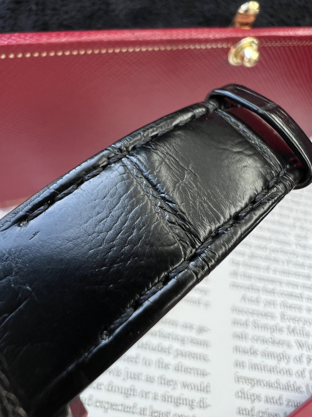 表带是真正鳄鱼皮带,市场基本都是牛皮压印鳄鱼皮纹理仅此而已!!!!!!对于顶级奢品我们绝对玩的真实