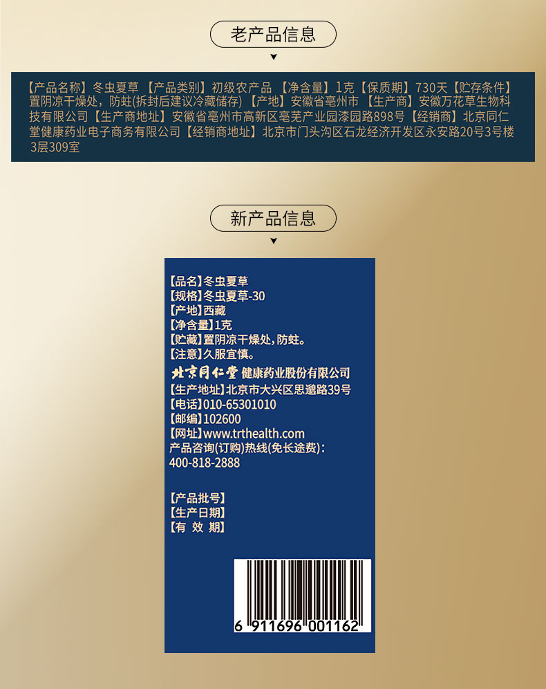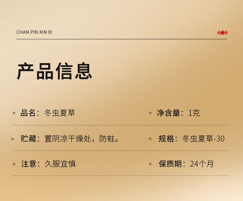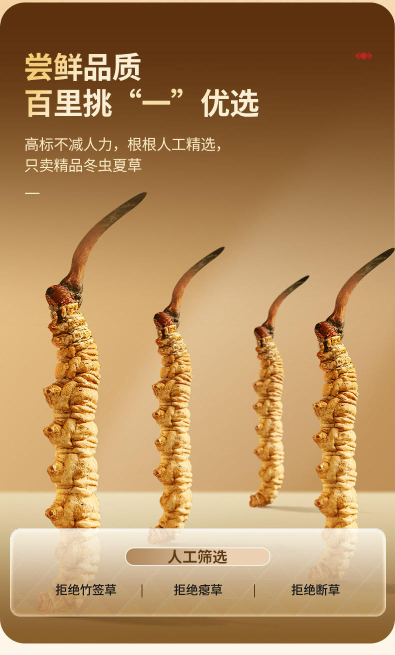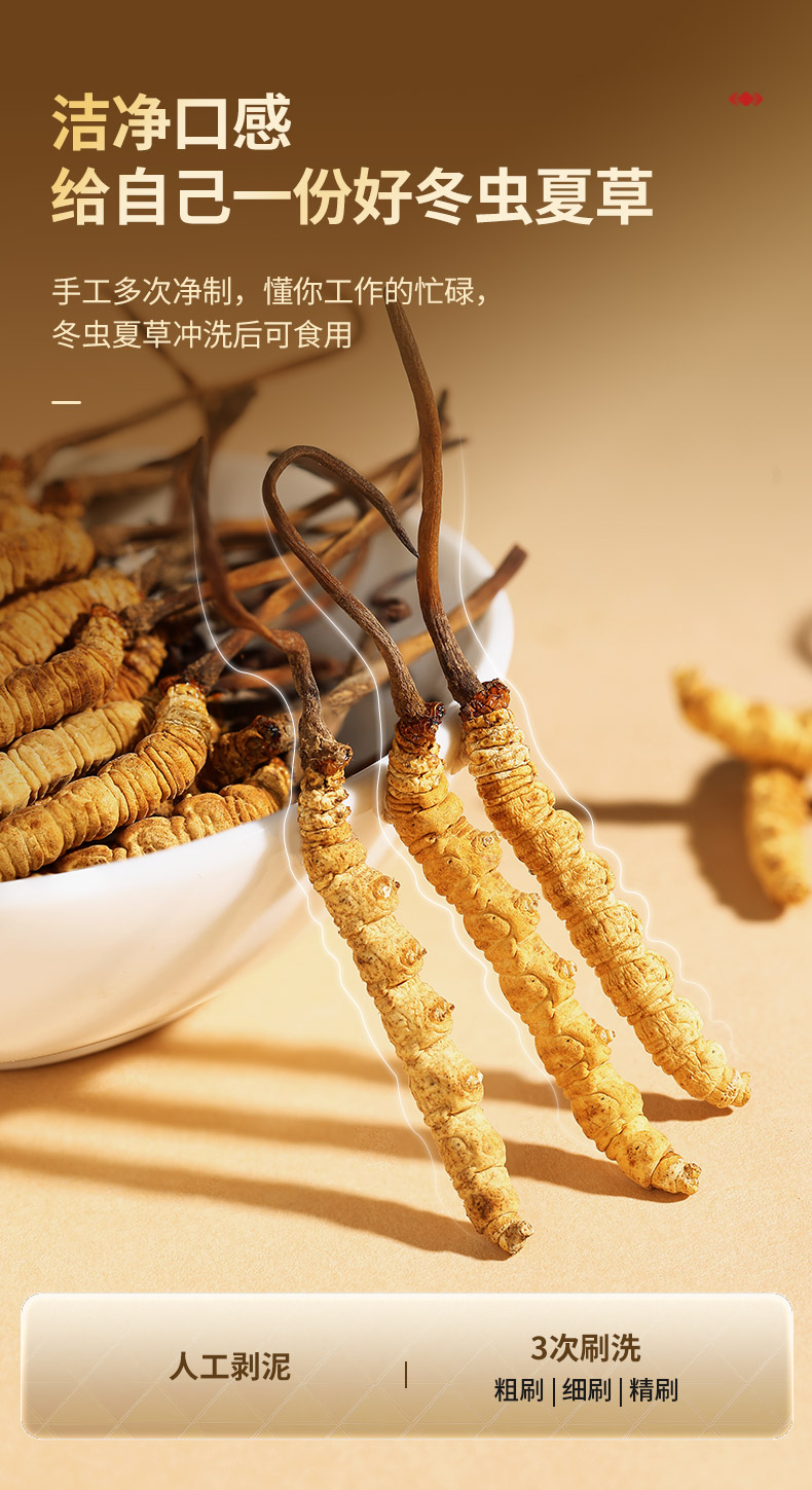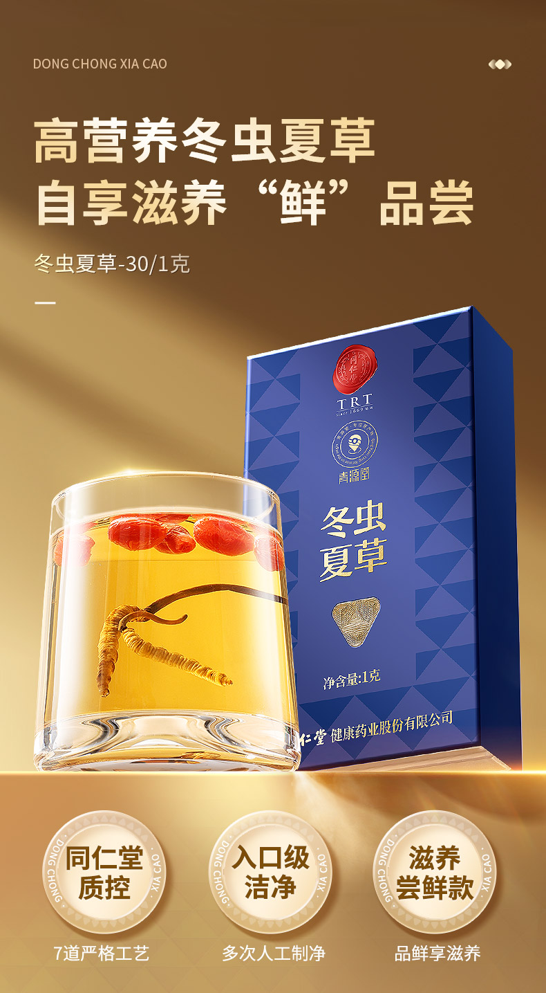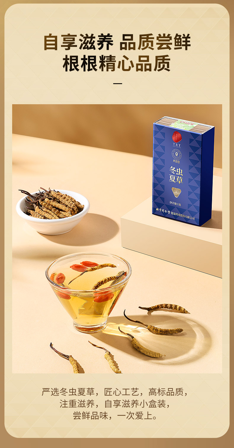 【正宗同仁堂品牌】北京同仁堂 青源堂 冬虫夏草 3条/g 1克装 无竹签 拒绝断草 多次净制 人工剥泥SY