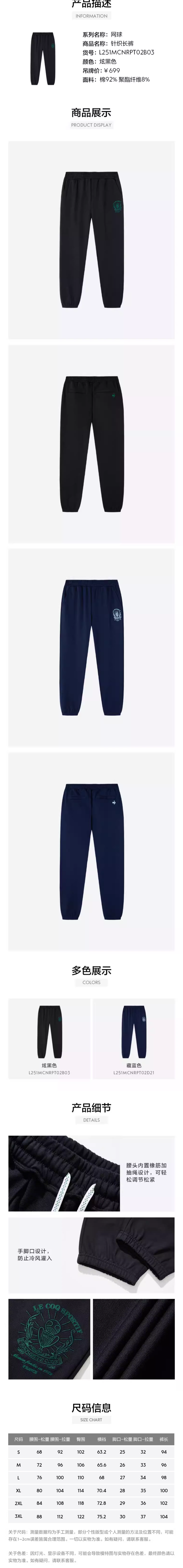 【大都会】乐卡克法国公鸡2025新款男士可调节针织长裤运动休闲网球风裤子