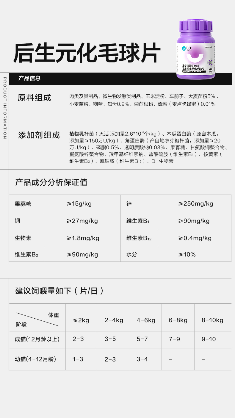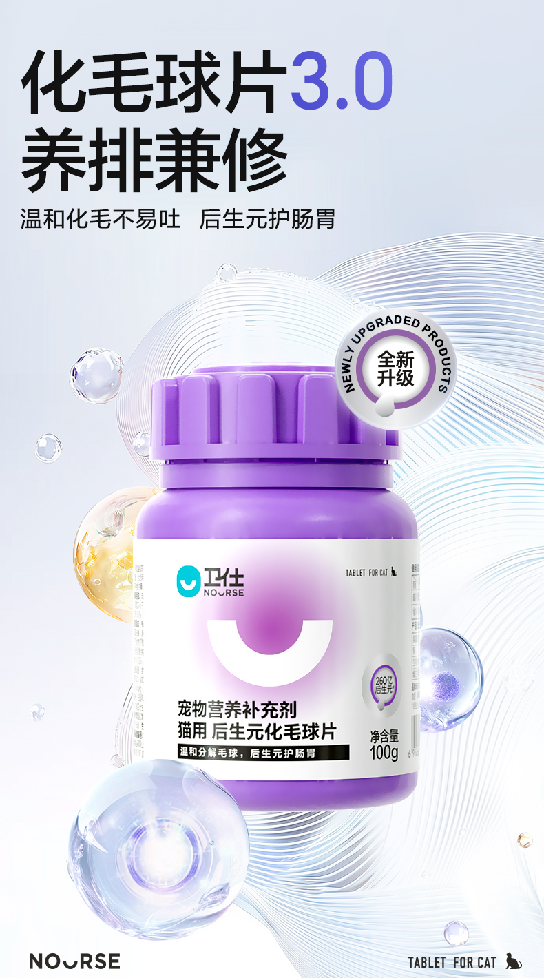 「植物温和排毛球」卫仕 猫用化毛球片200片