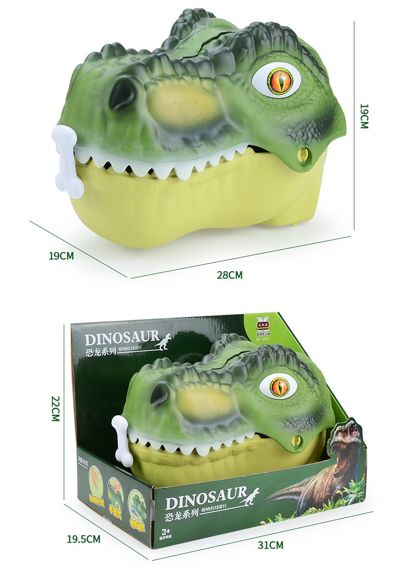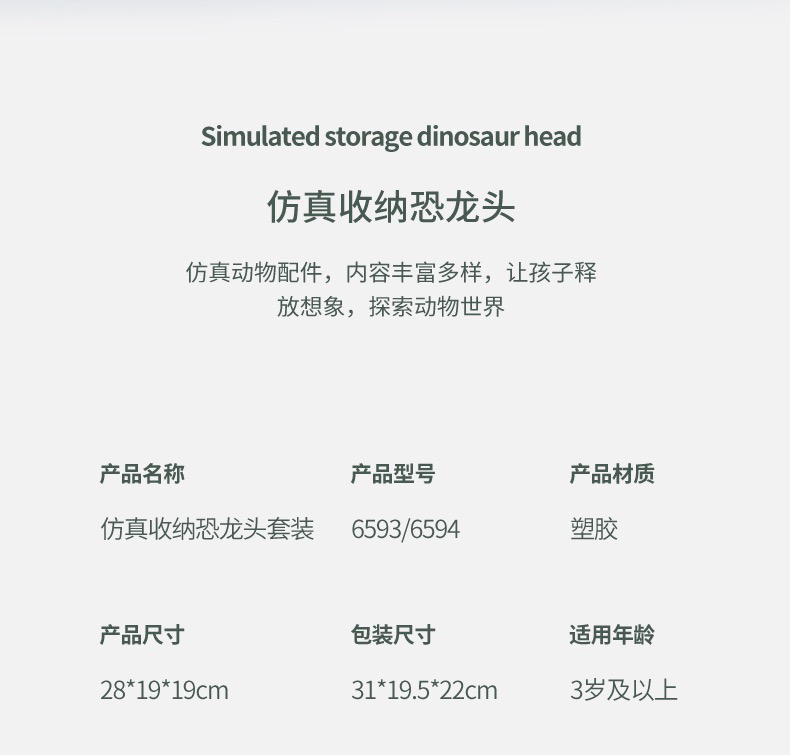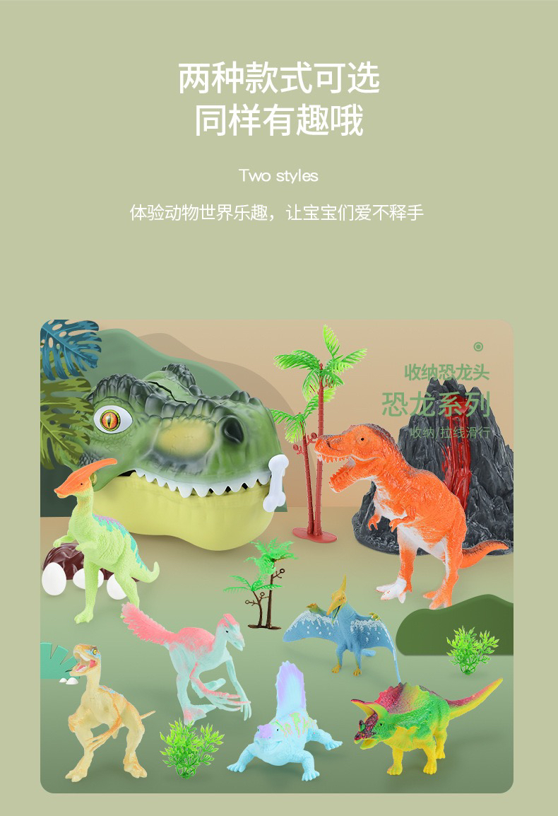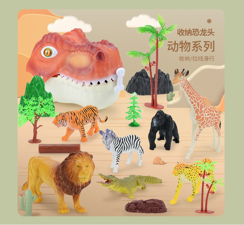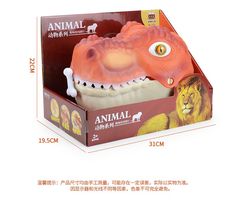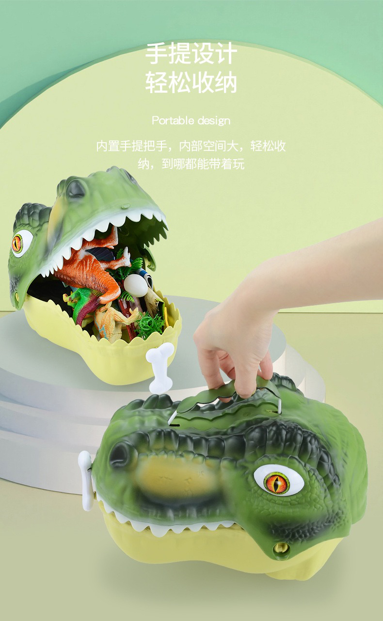 【博乐里】6593 6594 大号手提霸王龙收纳盒套装 拉线滑行恐龙头 仿真动物模型
