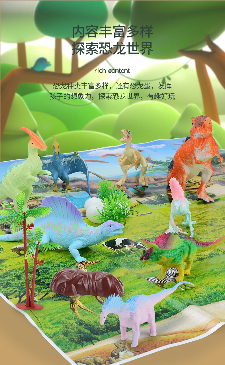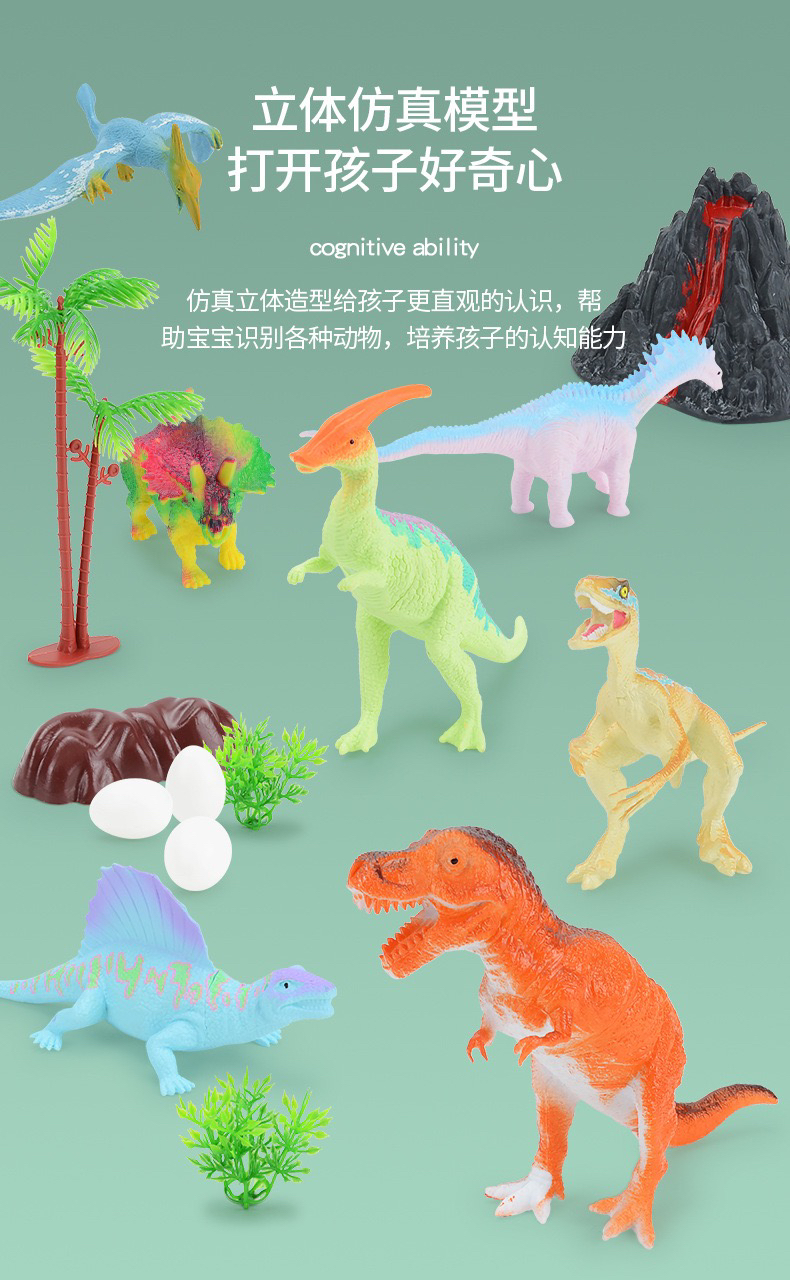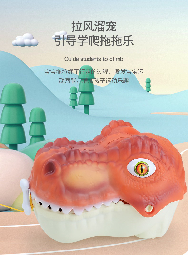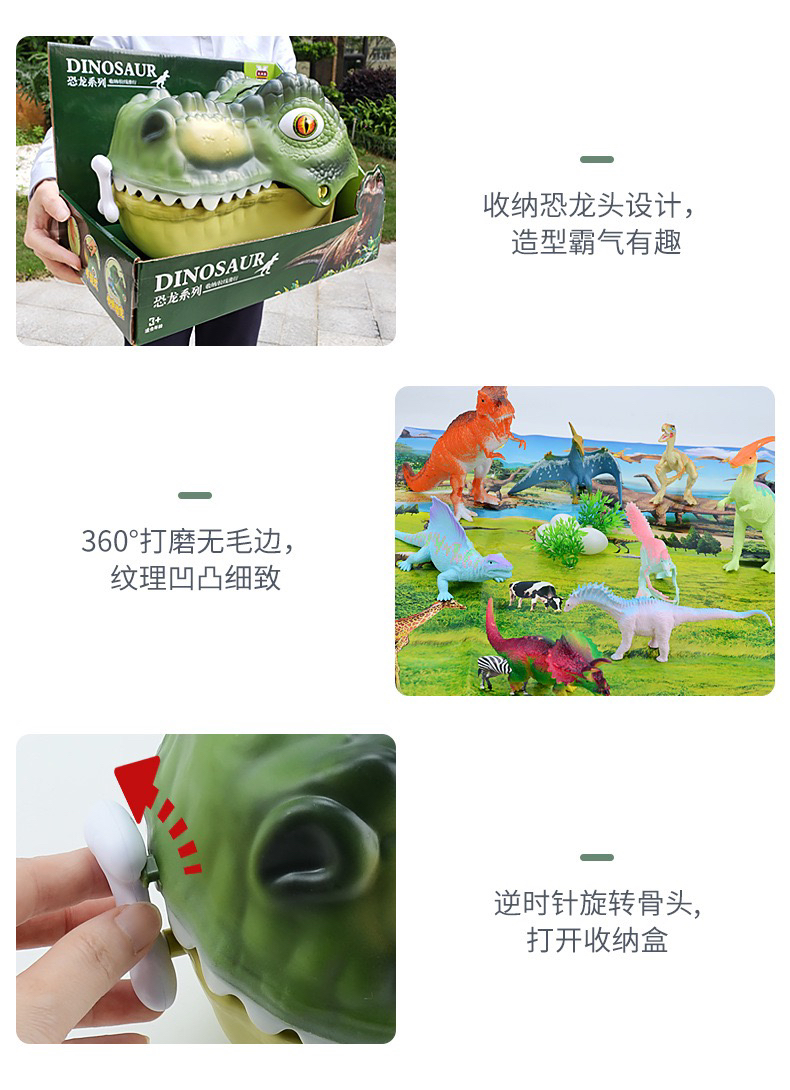 【博乐里】6593 6594 大号手提霸王龙收纳盒套装 拉线滑行恐龙头 仿真动物模型