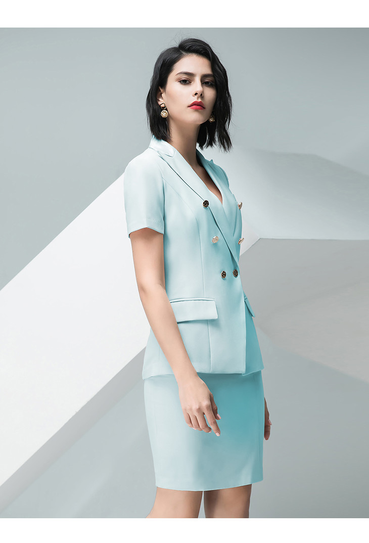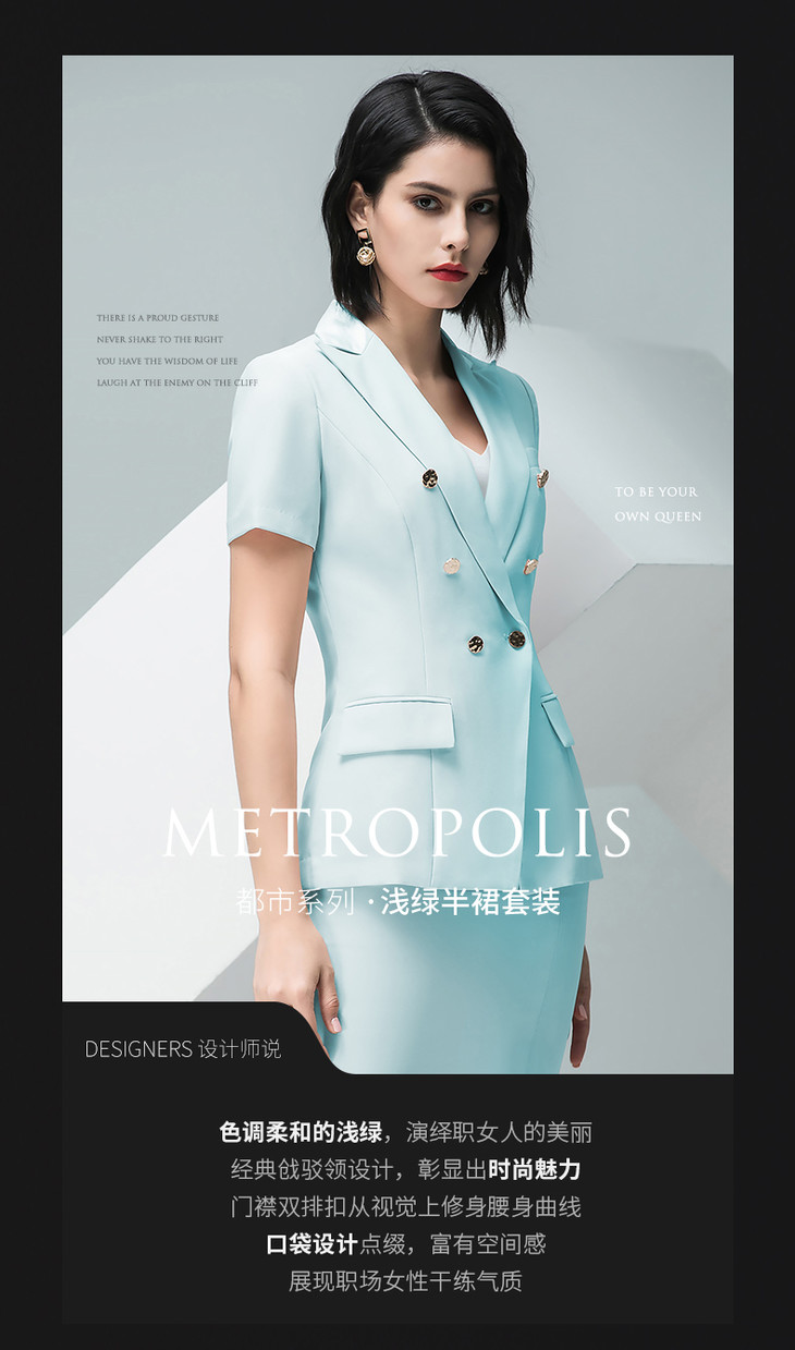 IWY/浅绿色短袖西服半裙套装C10216 S10216