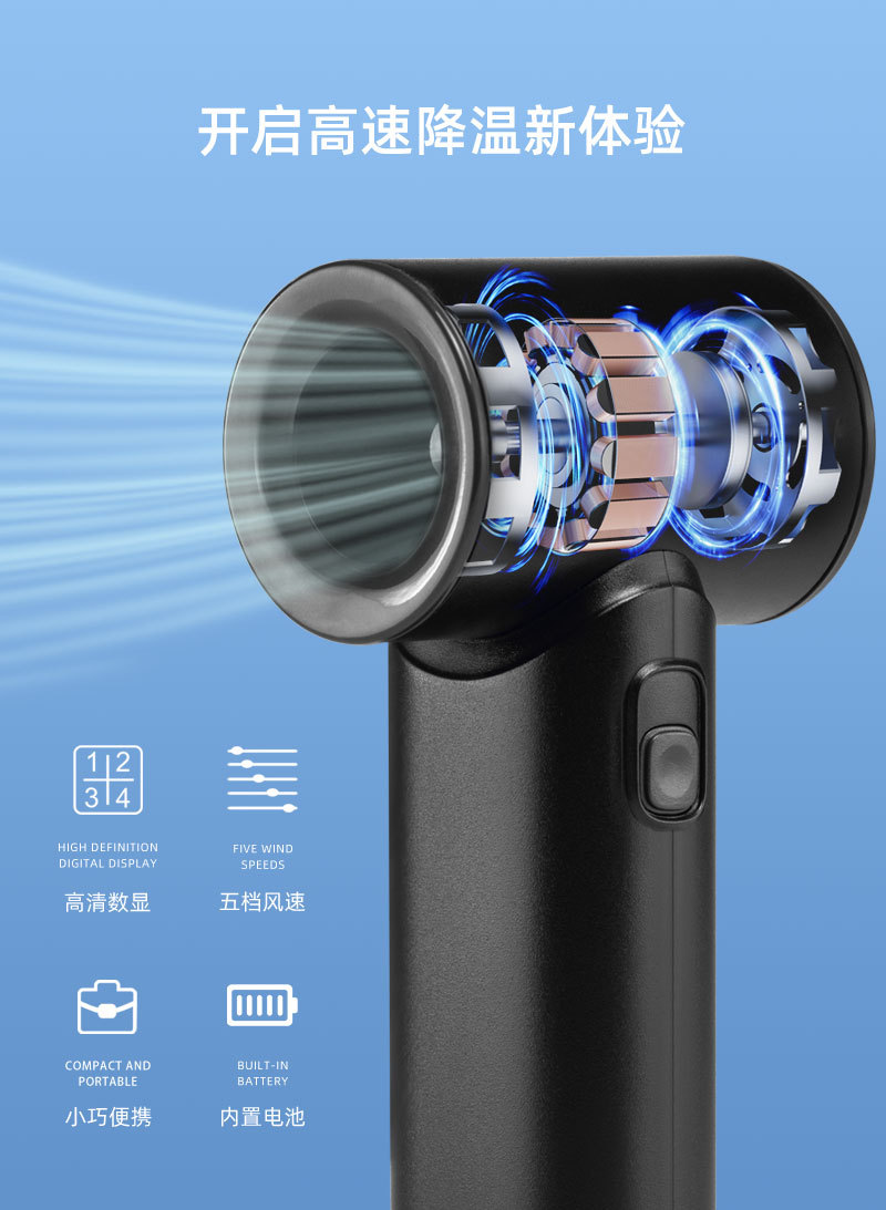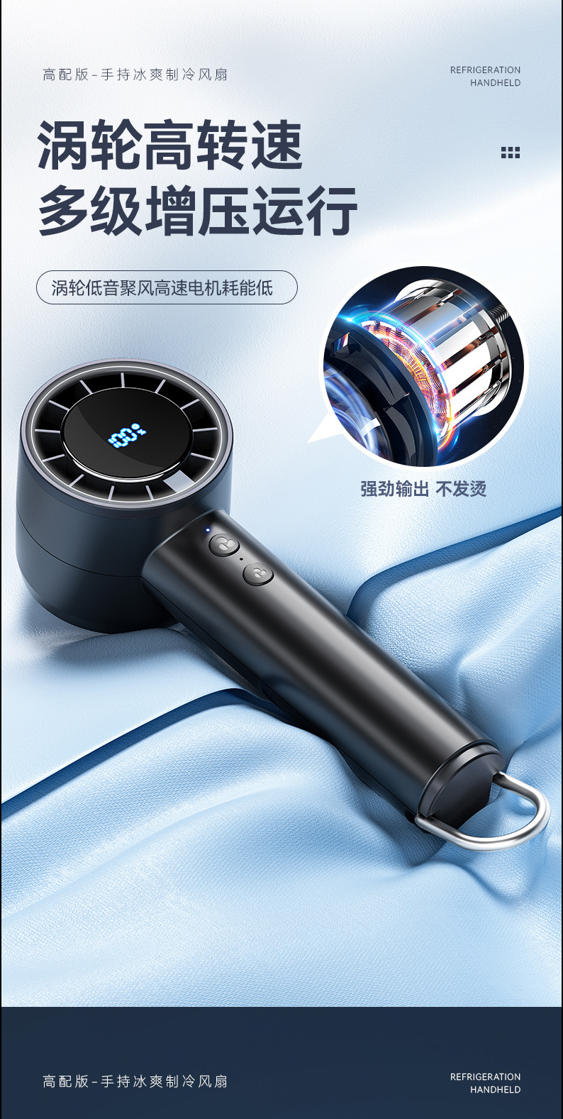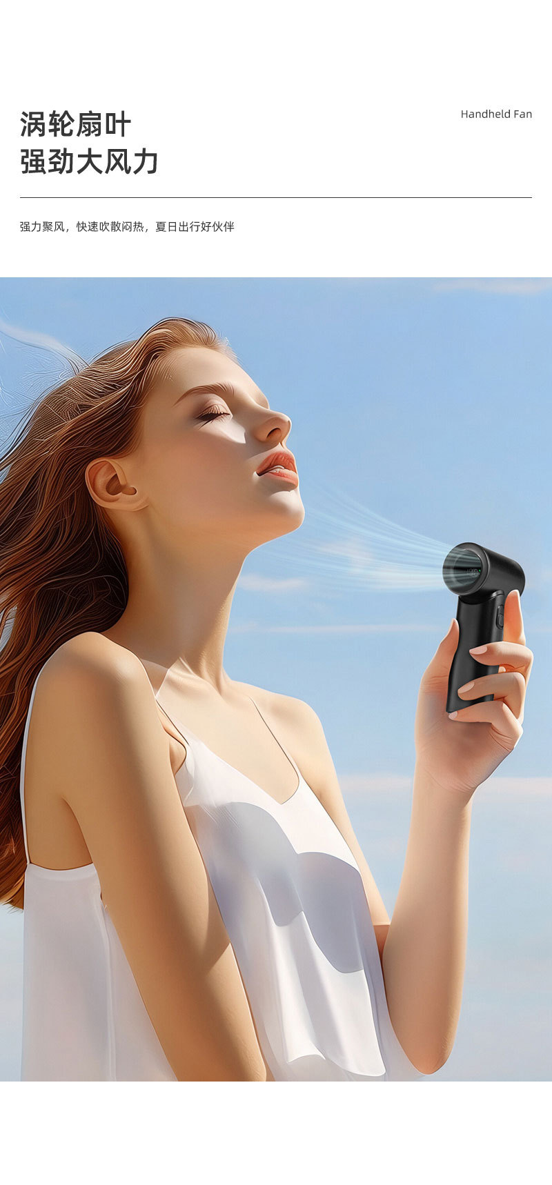 【三合一手持涡轮高速小风扇】usb充电新款冰感电风扇 便携式无叶风扇