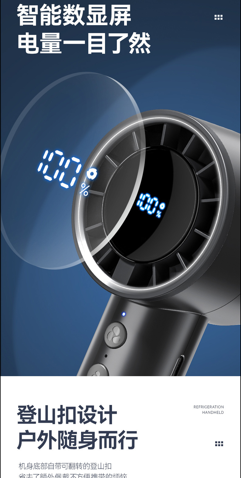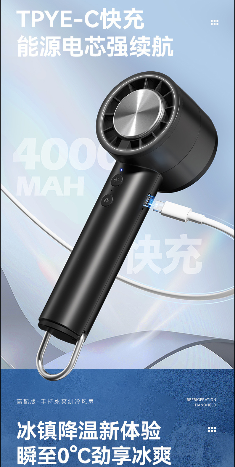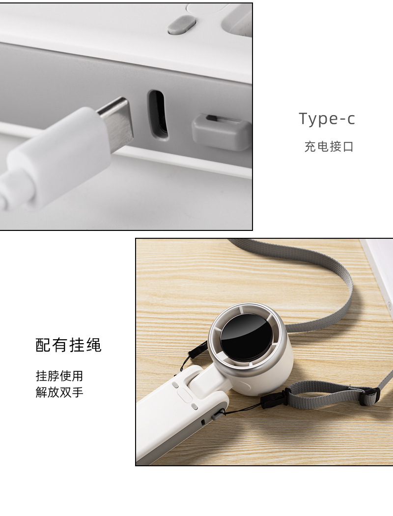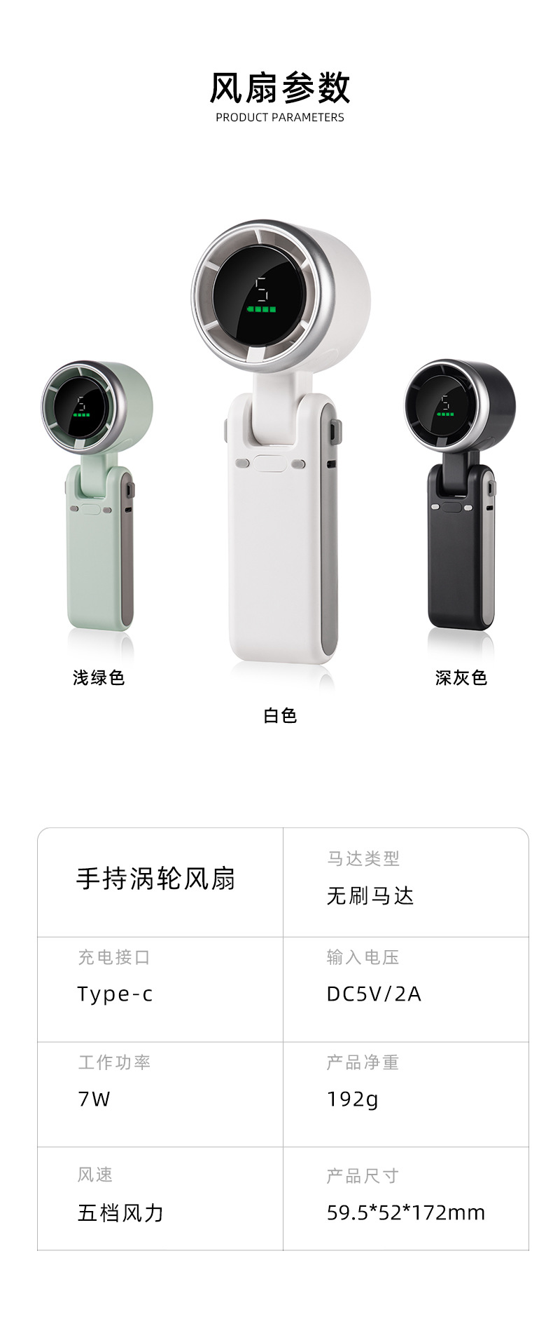 【三合一手持涡轮高速小风扇】usb充电新款冰感电风扇 便携式无叶风扇