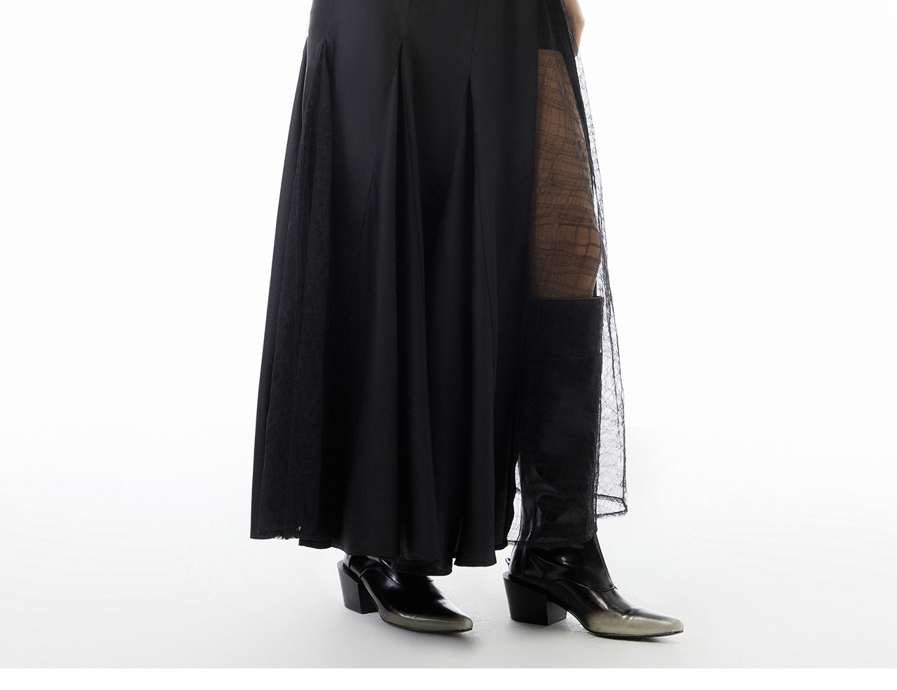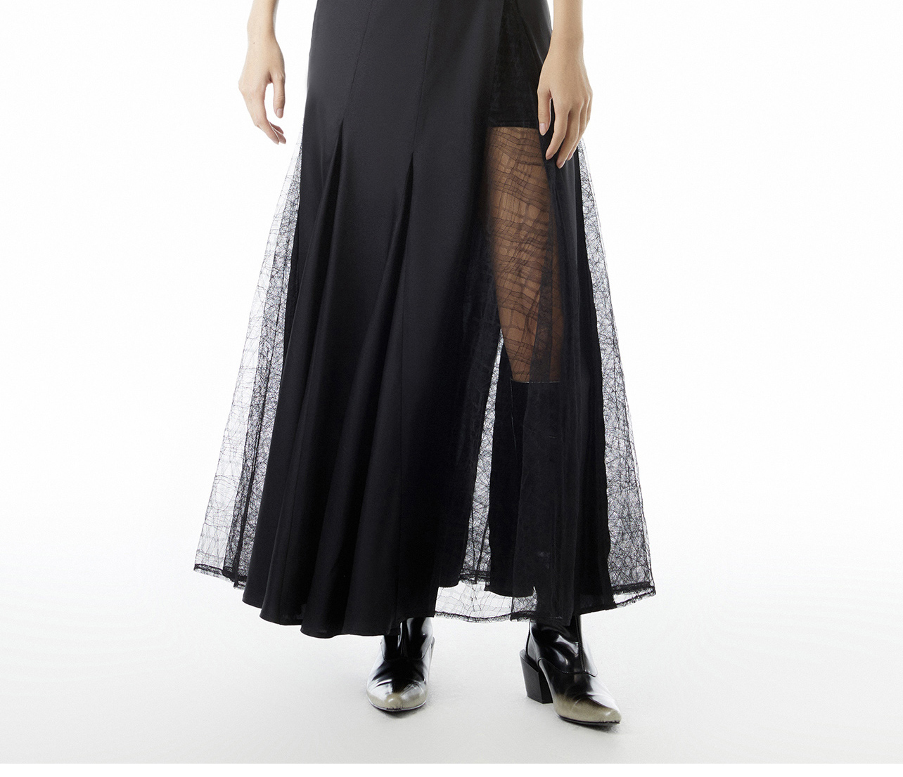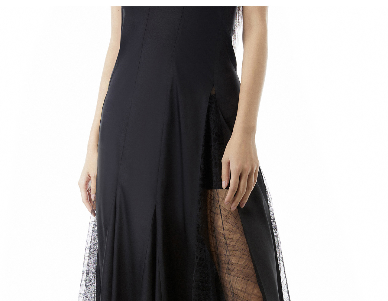 lost in echo设计师品牌Aliz系列醋酸蕾丝拼接吊带修身长款连衣裙
