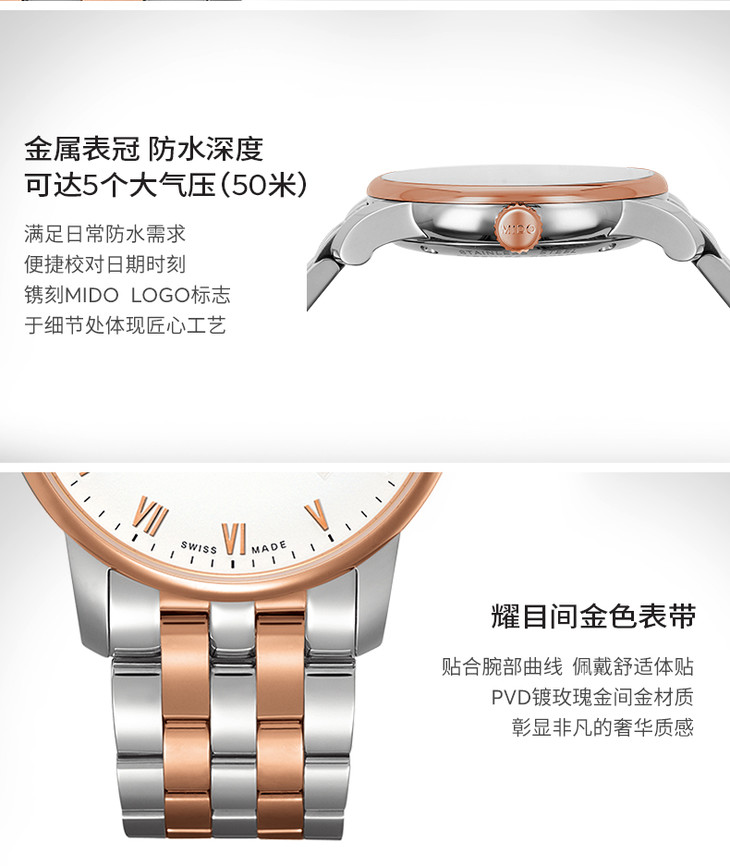 不锈钢/PVD镀玫瑰金表壳
