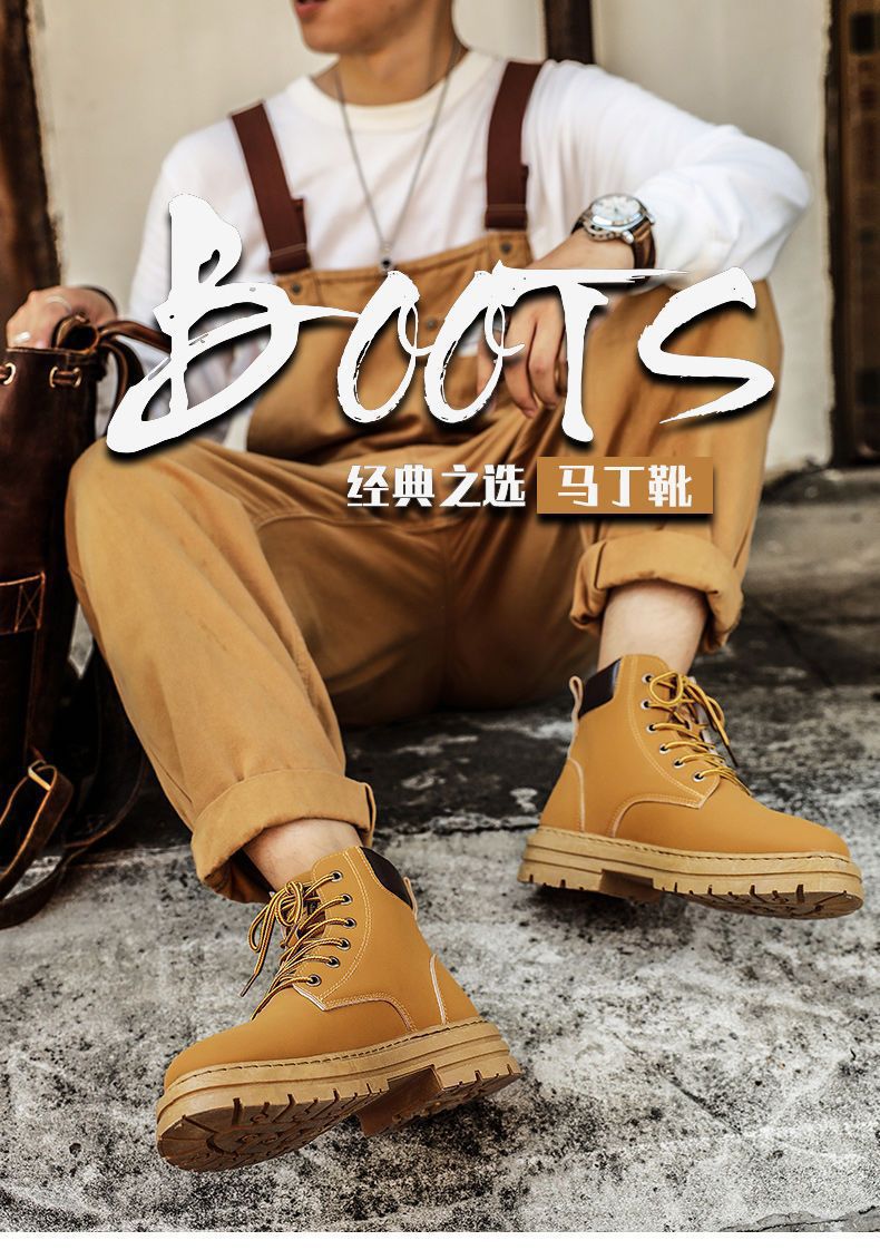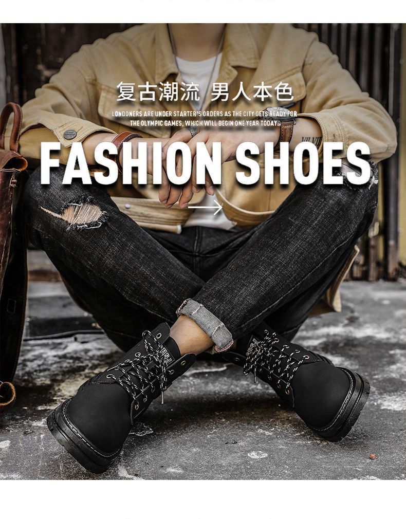 【复古潮流,男人本色!】马丁靴男鞋秋季新款 高帮工装靴子 英伦风短靴 韩版百搭厚底靴子 潮鞋-QB