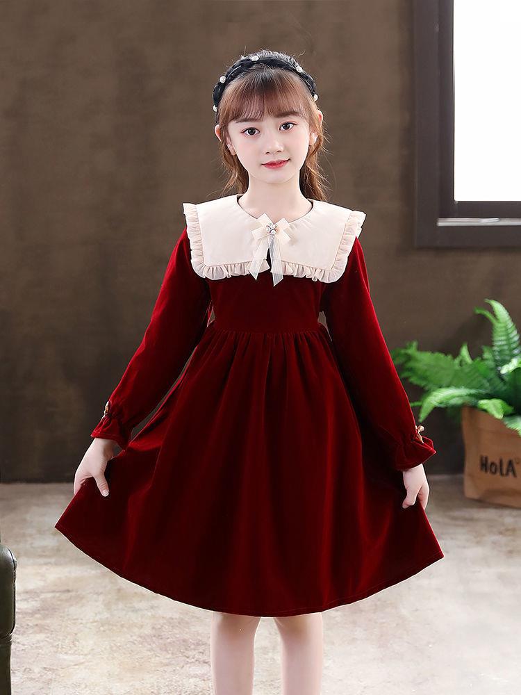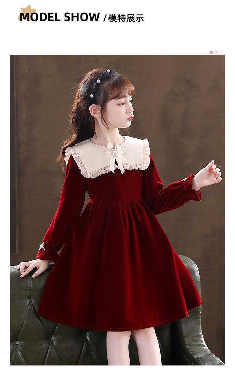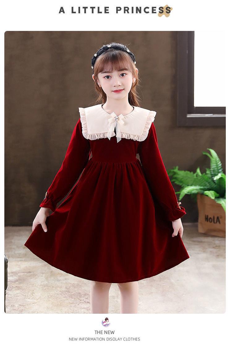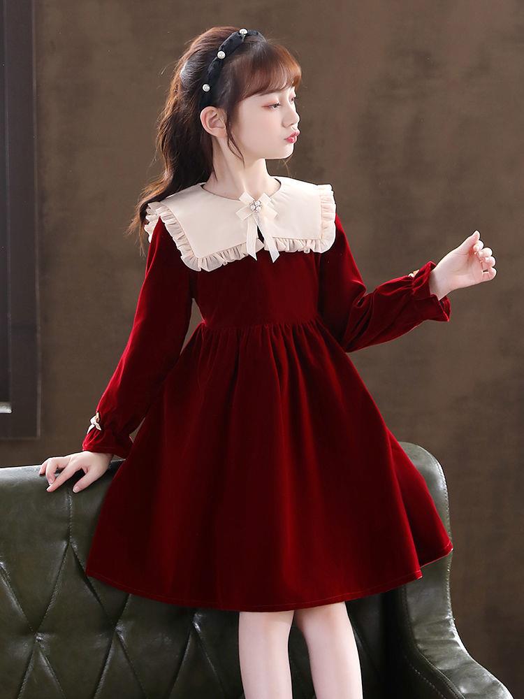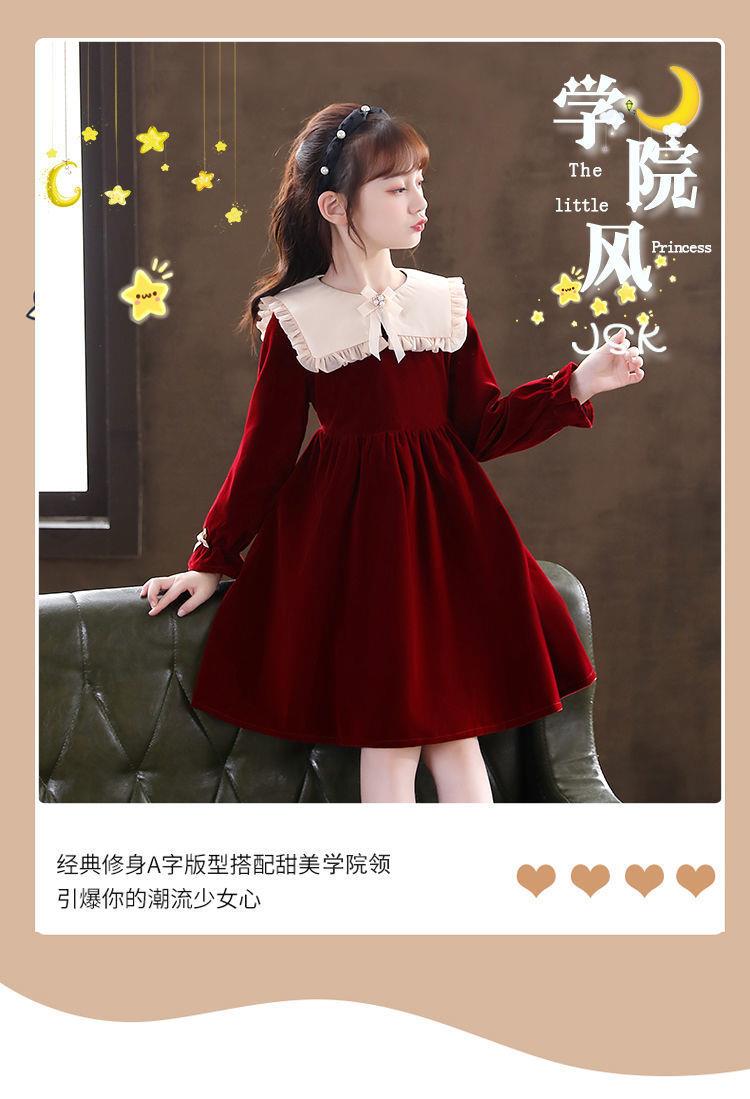 女童学生连衣裙春季新款洋气秋冬装小女孩公主裙儿童拜年服裙子潮
