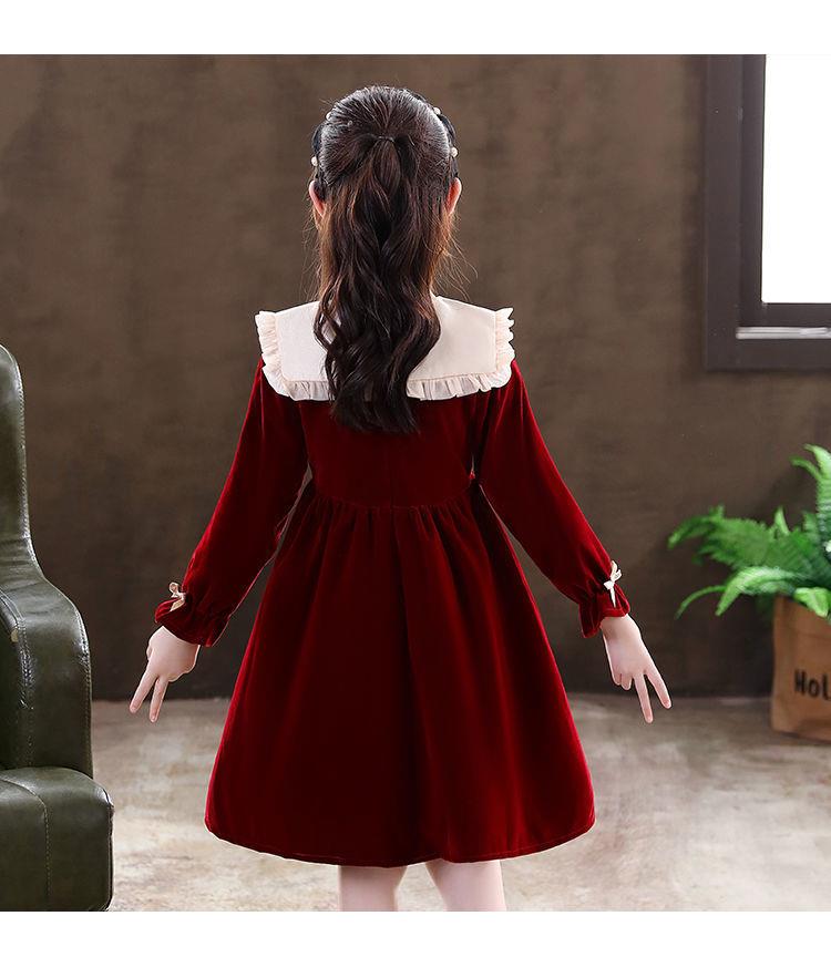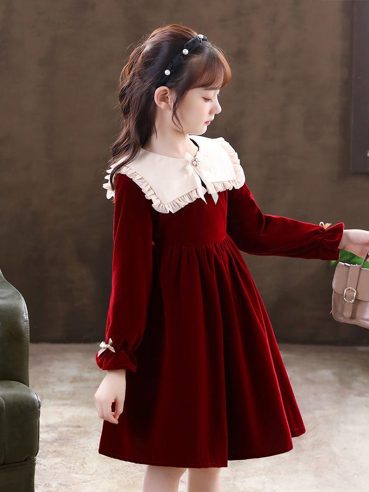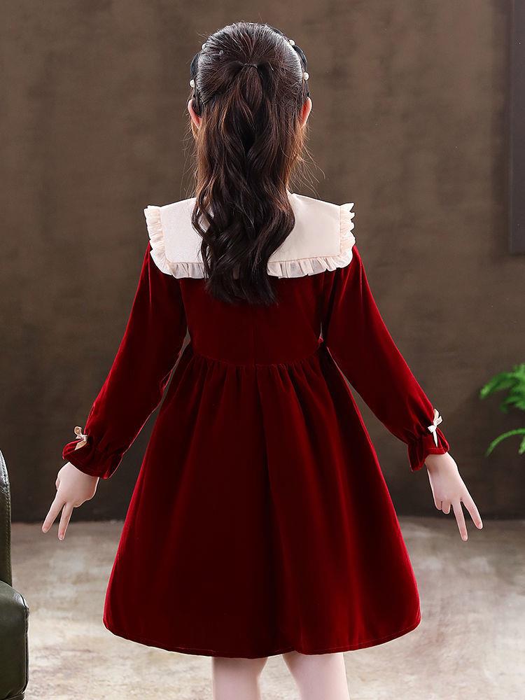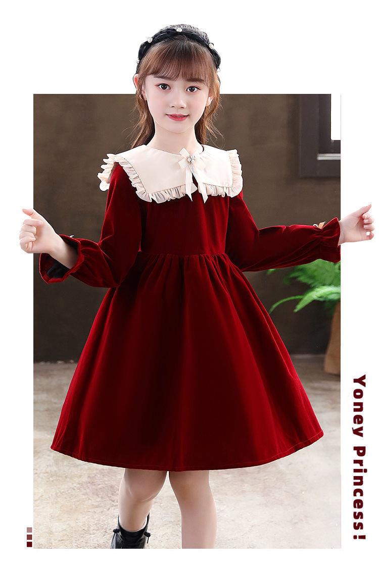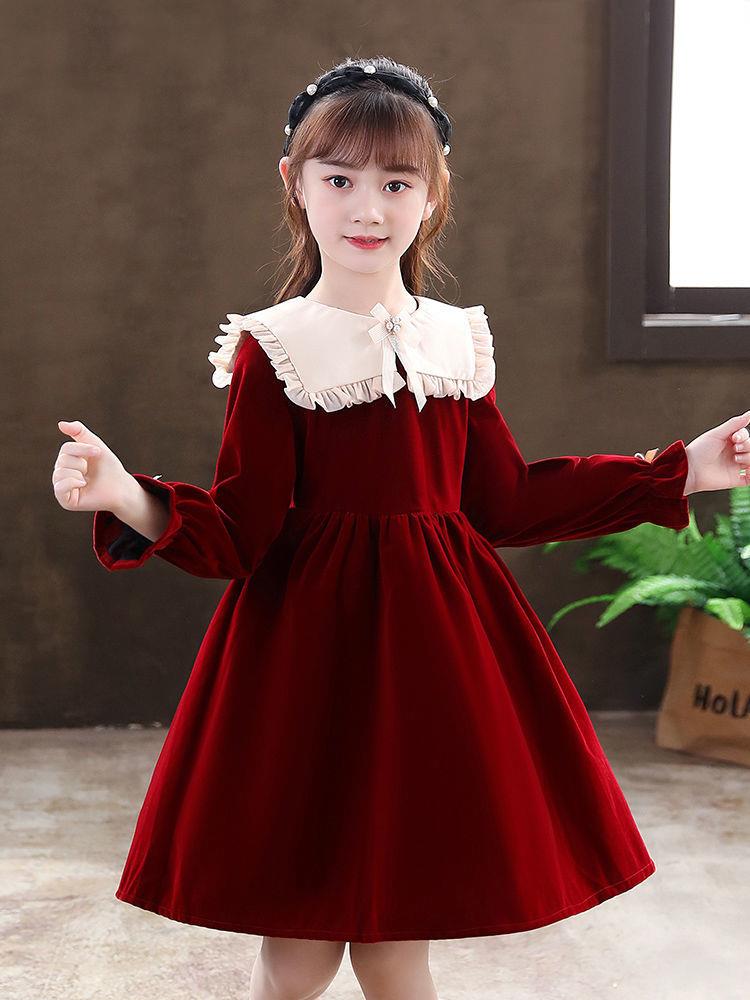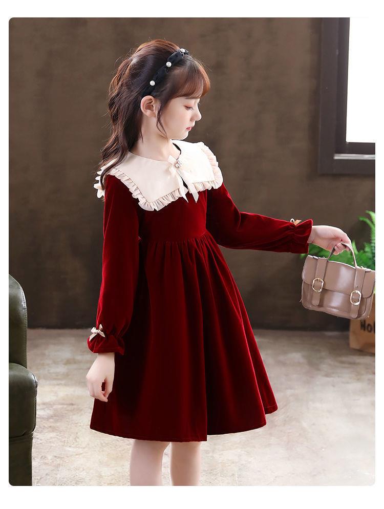 女童学生连衣裙春季新款洋气秋冬装小女孩公主裙儿童拜年服裙子潮