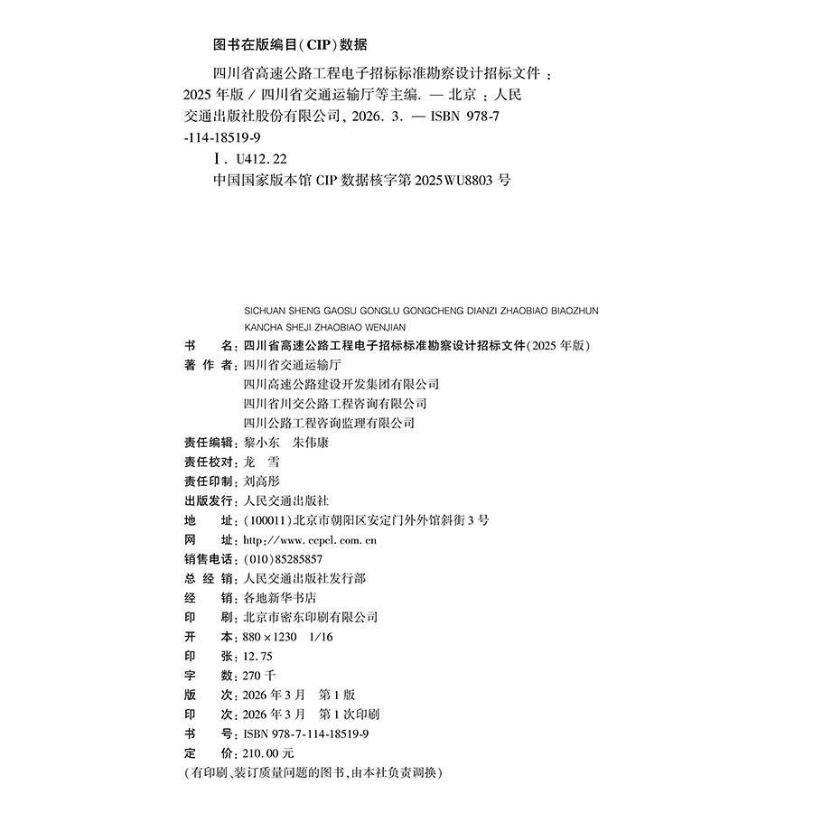 书名:四川省高速公路工程电子招标标准勘察设计招标文件(2025年版)