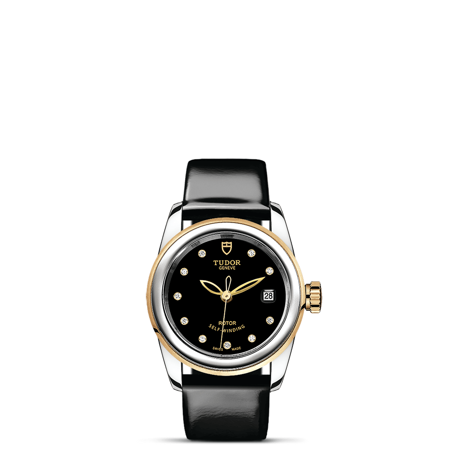 旋入式上链錶冠,饰以帝舵表标志;精钢覆有0.1毫米18K黄金薄层