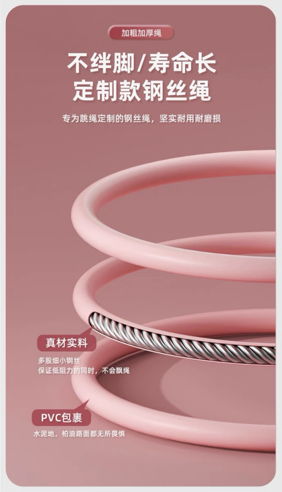 ✅跳绳是一项全身性的有氧运动,可以有效锻炼身体的协调性、增强心肺功能,同时还能帮助你燃烧卡路里,达到减肥塑形的效果。 ✅无论你是健身新手还是运动达人,这款跳绳都能满足你的需求。它是一款适合各个年龄段和运动水平人群的健身好物。
