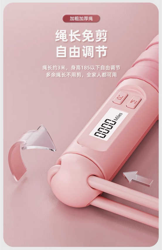 这款长绳+无绳两用计数跳绳 设计独特,更结合了长绳和无绳两种模式 为你的运动体验带来更多选择 让我们一起来探索它的魅力吧!
