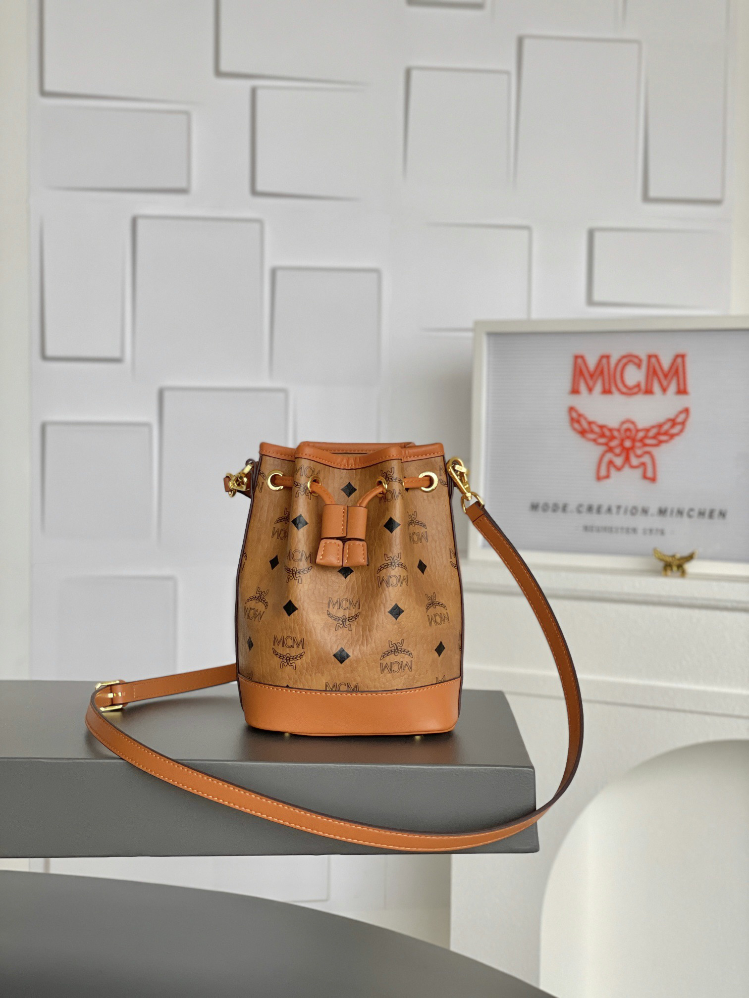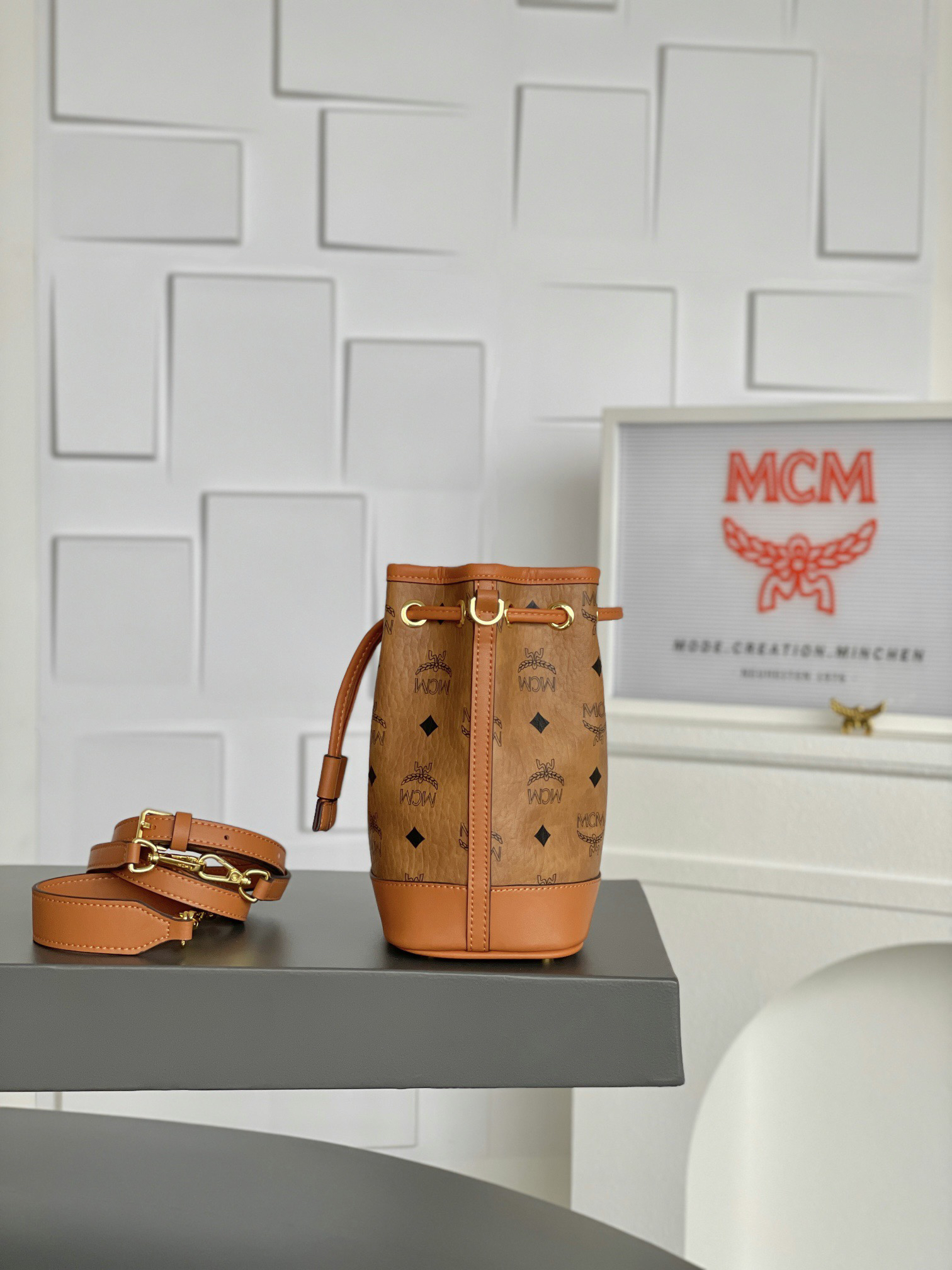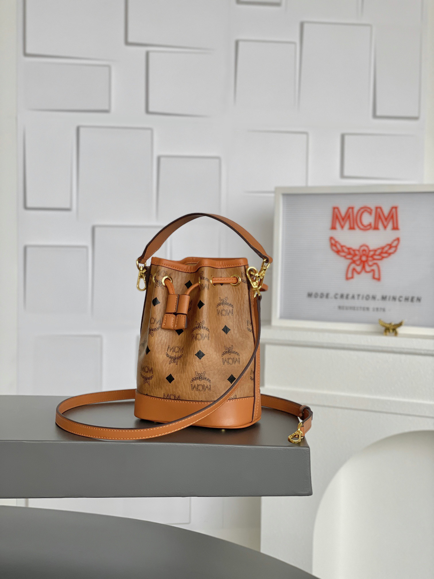 秋冬特惠💰730 原单MCM 原厂皮 𝗠𝗶𝗻𝗶迷你抽绳水桶包MWSBAERO1CO001 这款Dessau抽绳包
