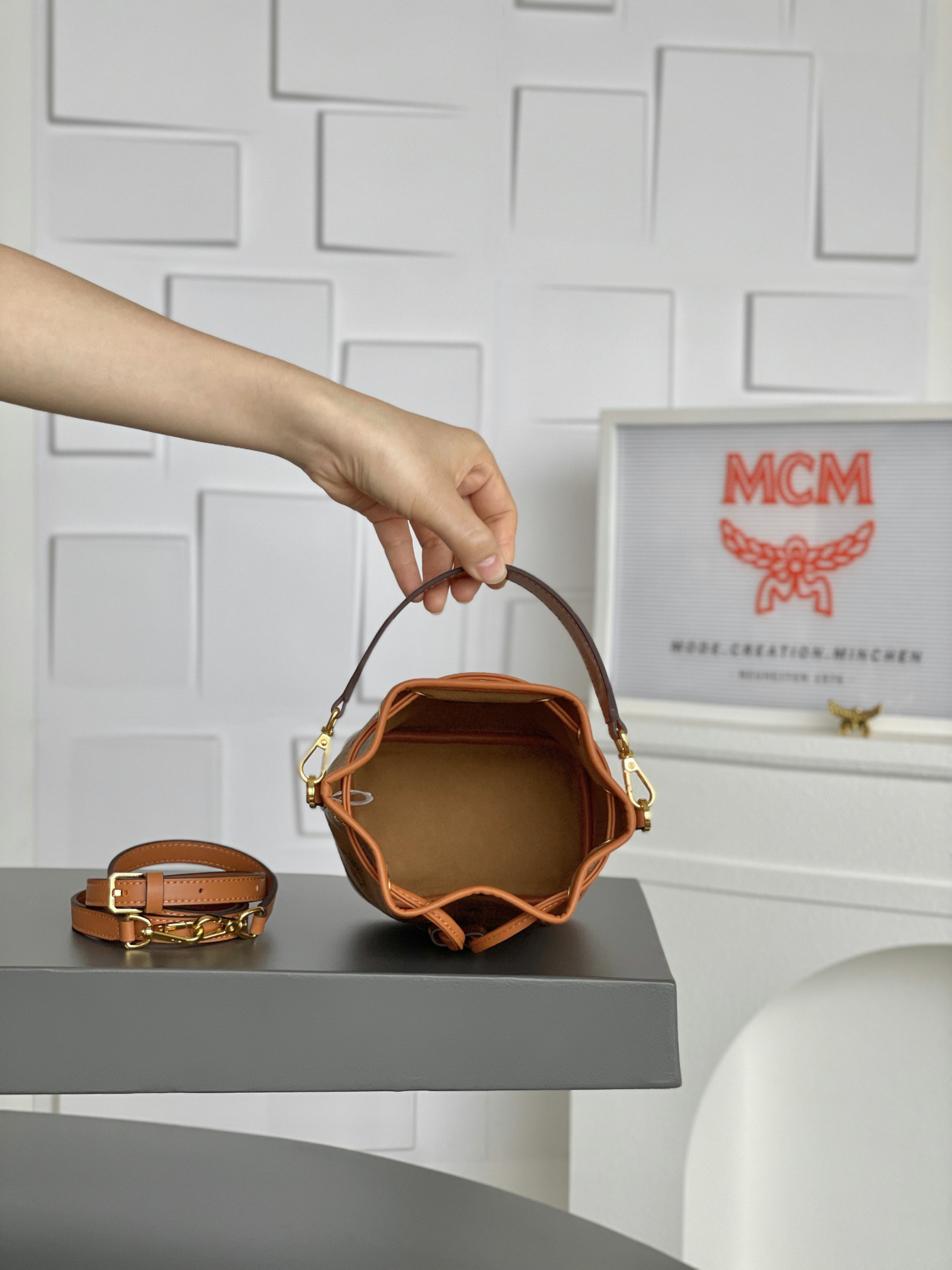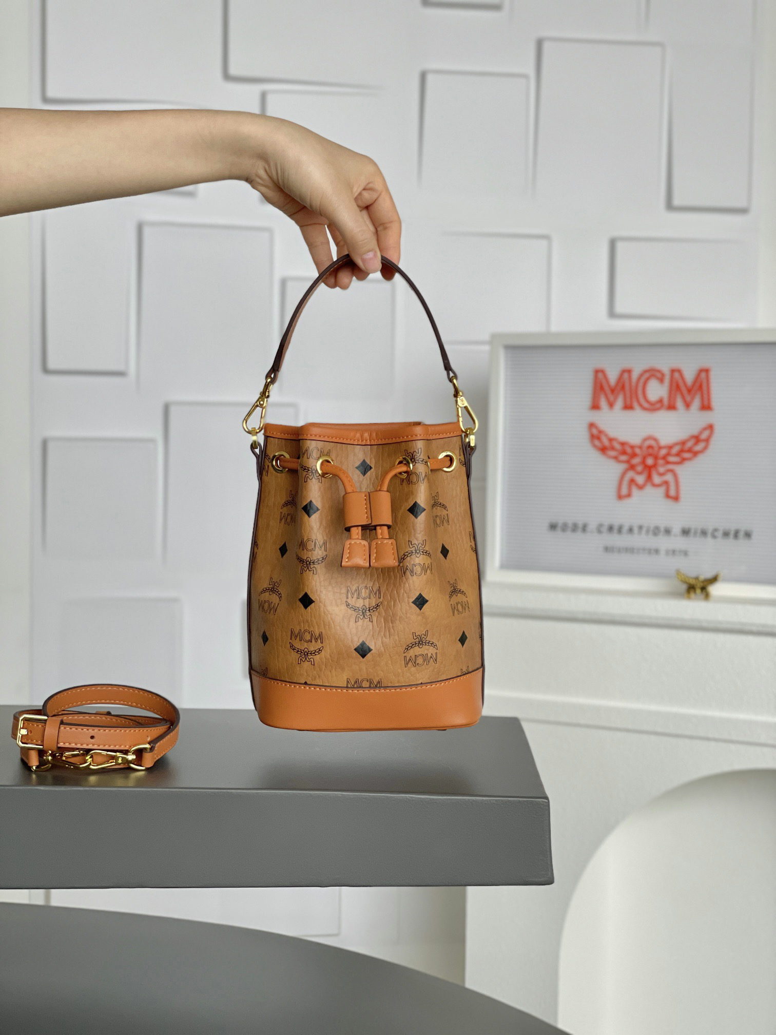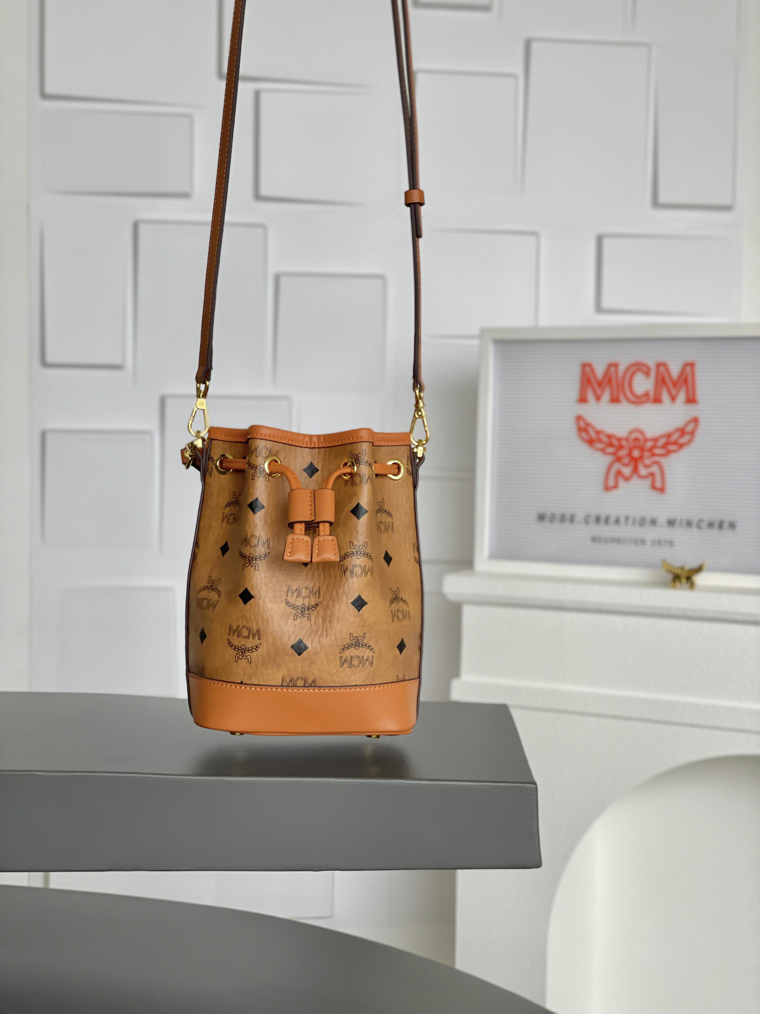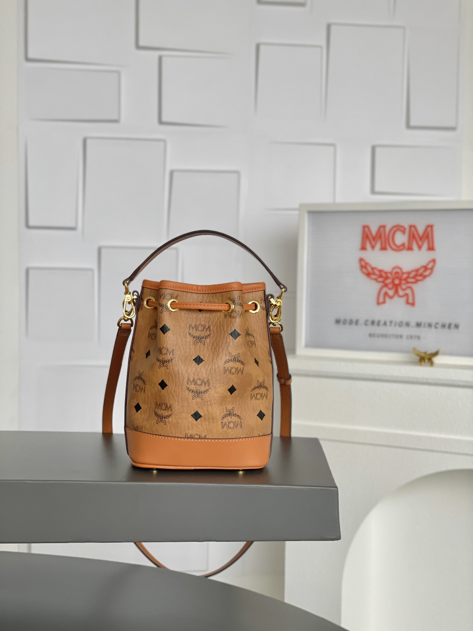 秋冬特惠💰730 原单MCM 原厂皮 𝗠𝗶𝗻𝗶迷你抽绳水桶包MWSBAERO1CO001 这款Dessau抽绳包