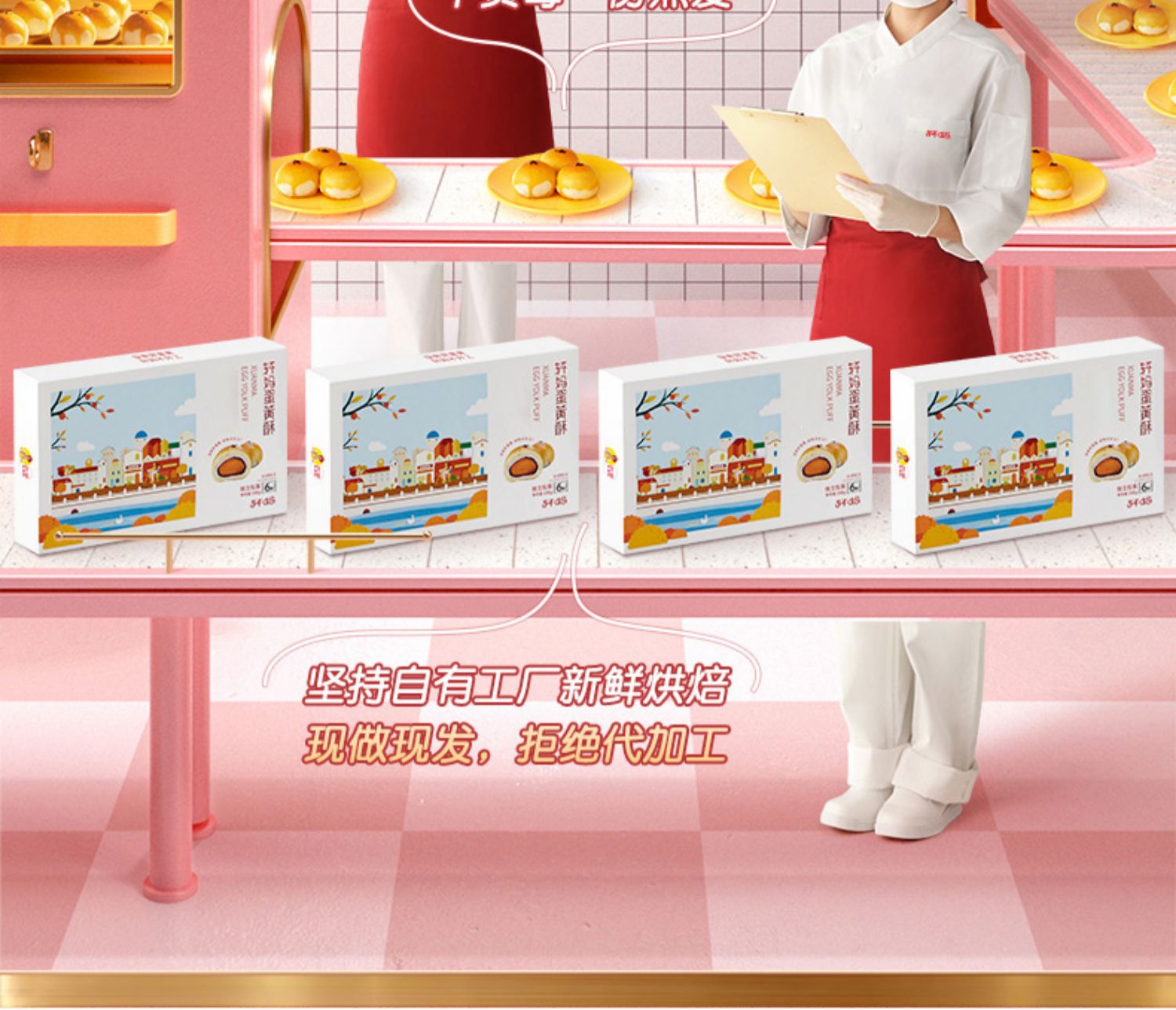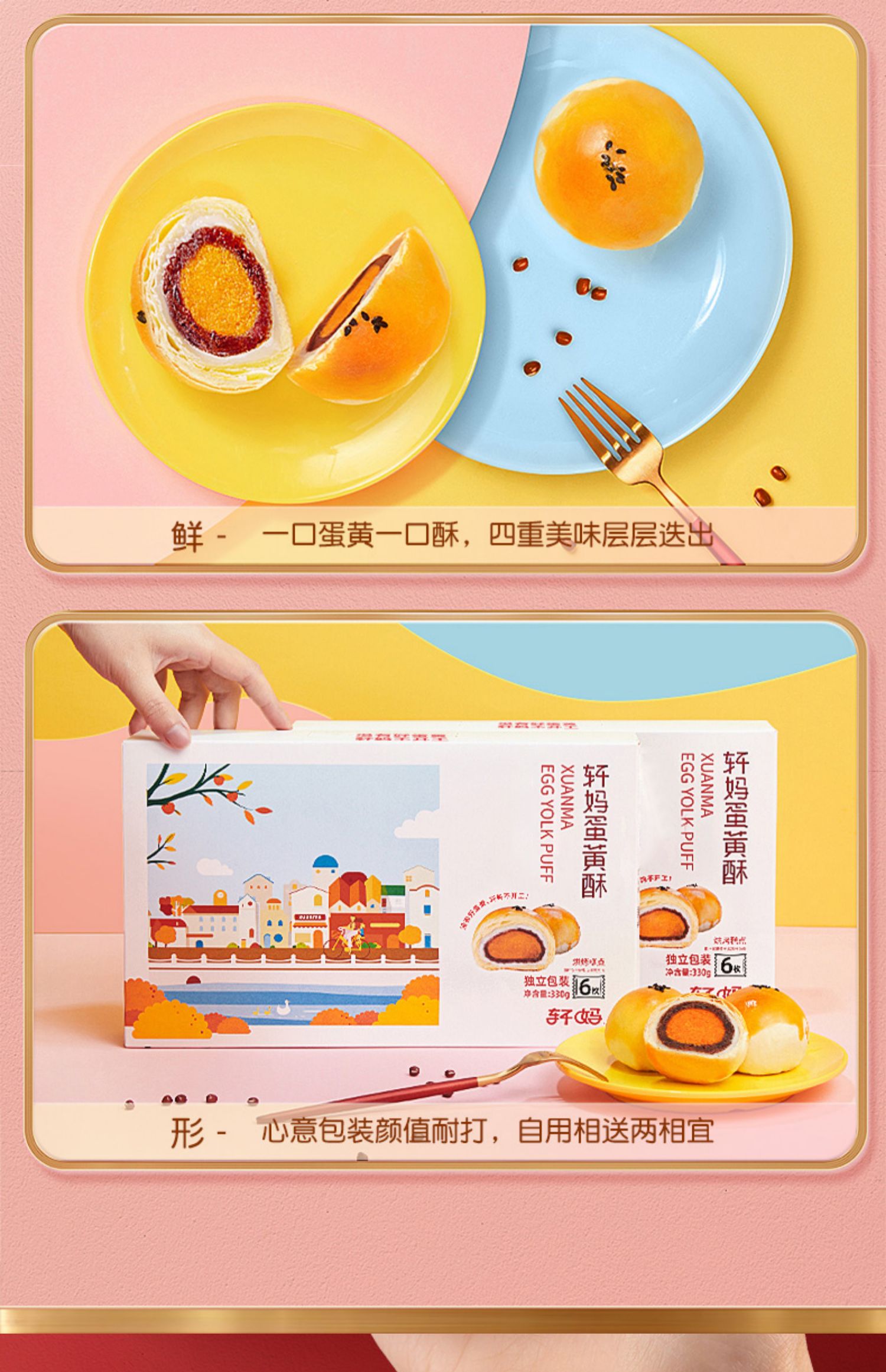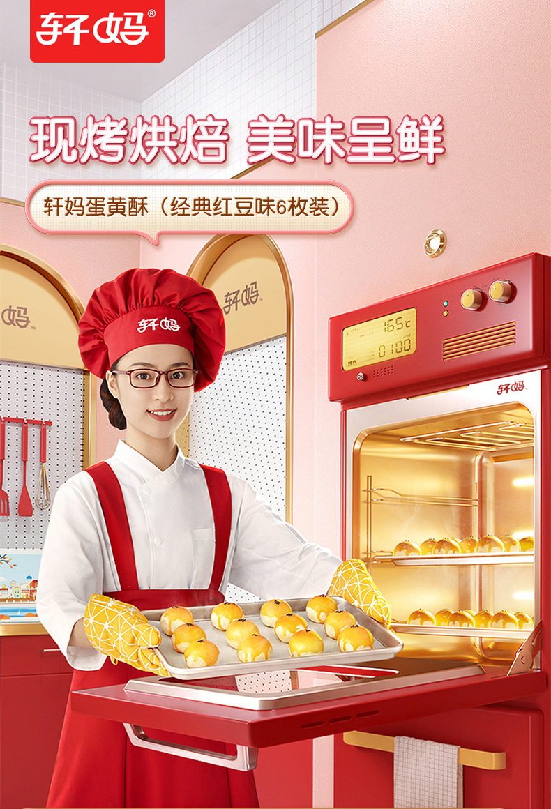 轩妈家蛋黄酥6枚经典红豆糕点雪媚娘办公室休闲小吃点心早餐零食