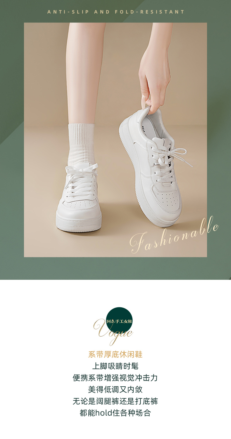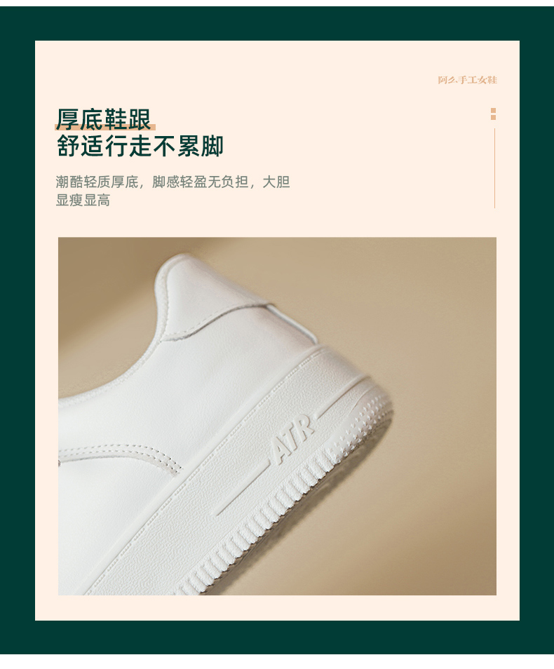 阿么手工女鞋厚底新款情侣小白鞋2026冬季百搭软底舒适板鞋3.5CM