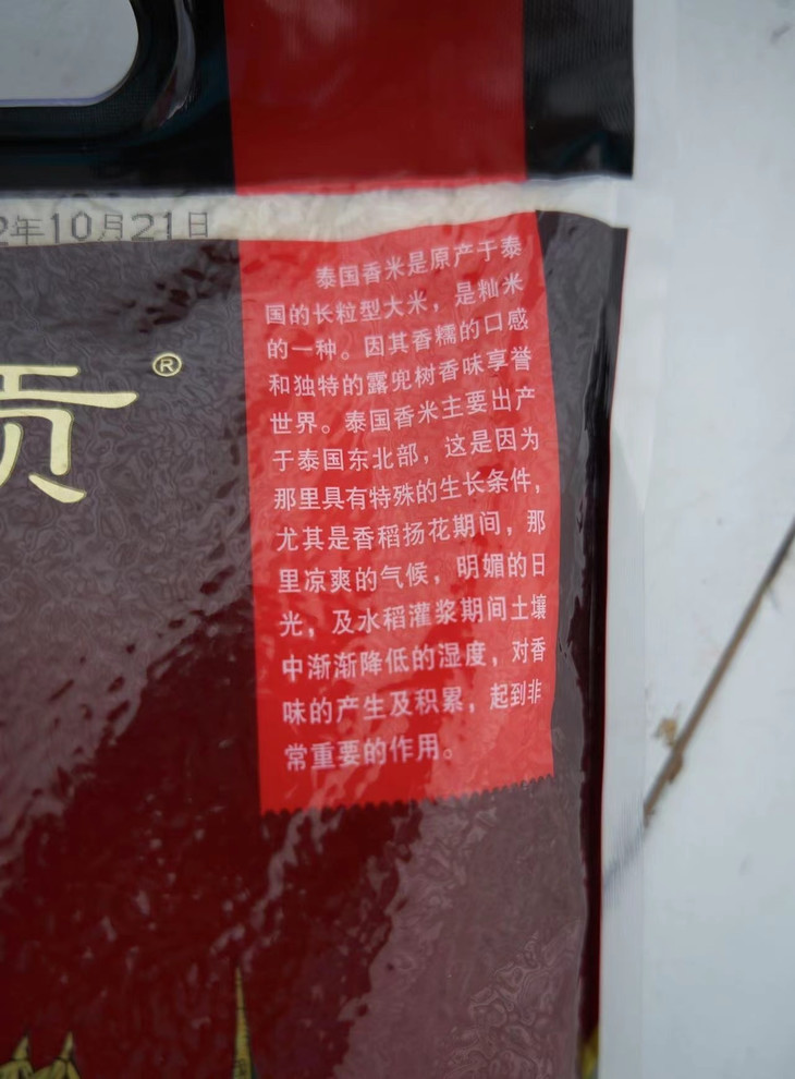 “Thai Hom Mali Rice”称号(泰国茉莉香米)