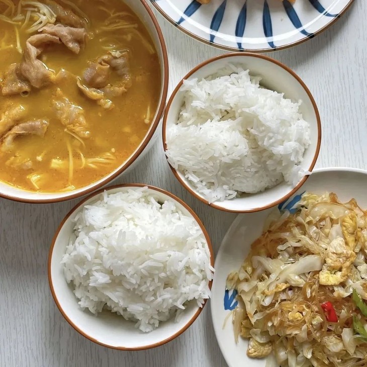 蒸好的米饭色泽莹润,粒粒分明,一水儿的漂亮!