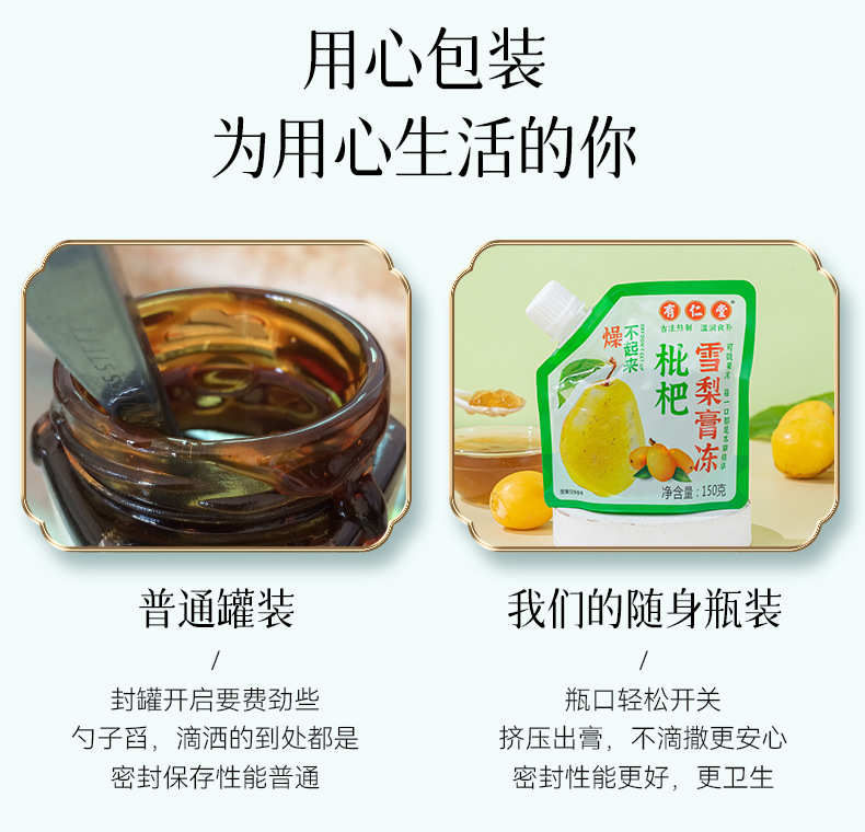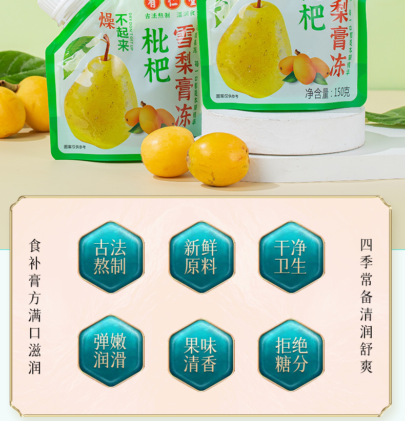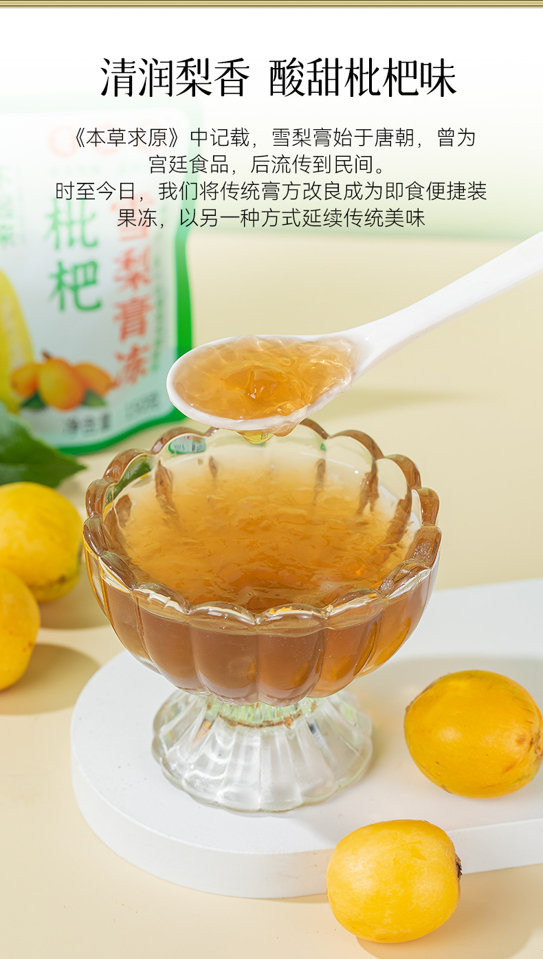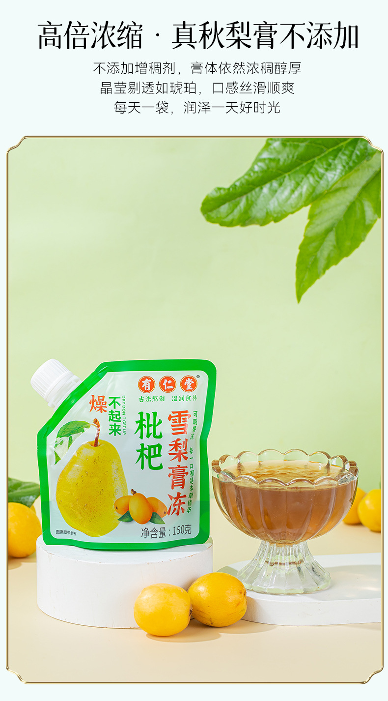 【买三送二!爽滑又回甘的枇杷雪梨膏冻】温和滋养弹嫩润滑,果味清香,酸甜枇杷味,细腻爽滑,有仁堂枇杷膏雪梨膏方果冻膏方150克果冻代健康