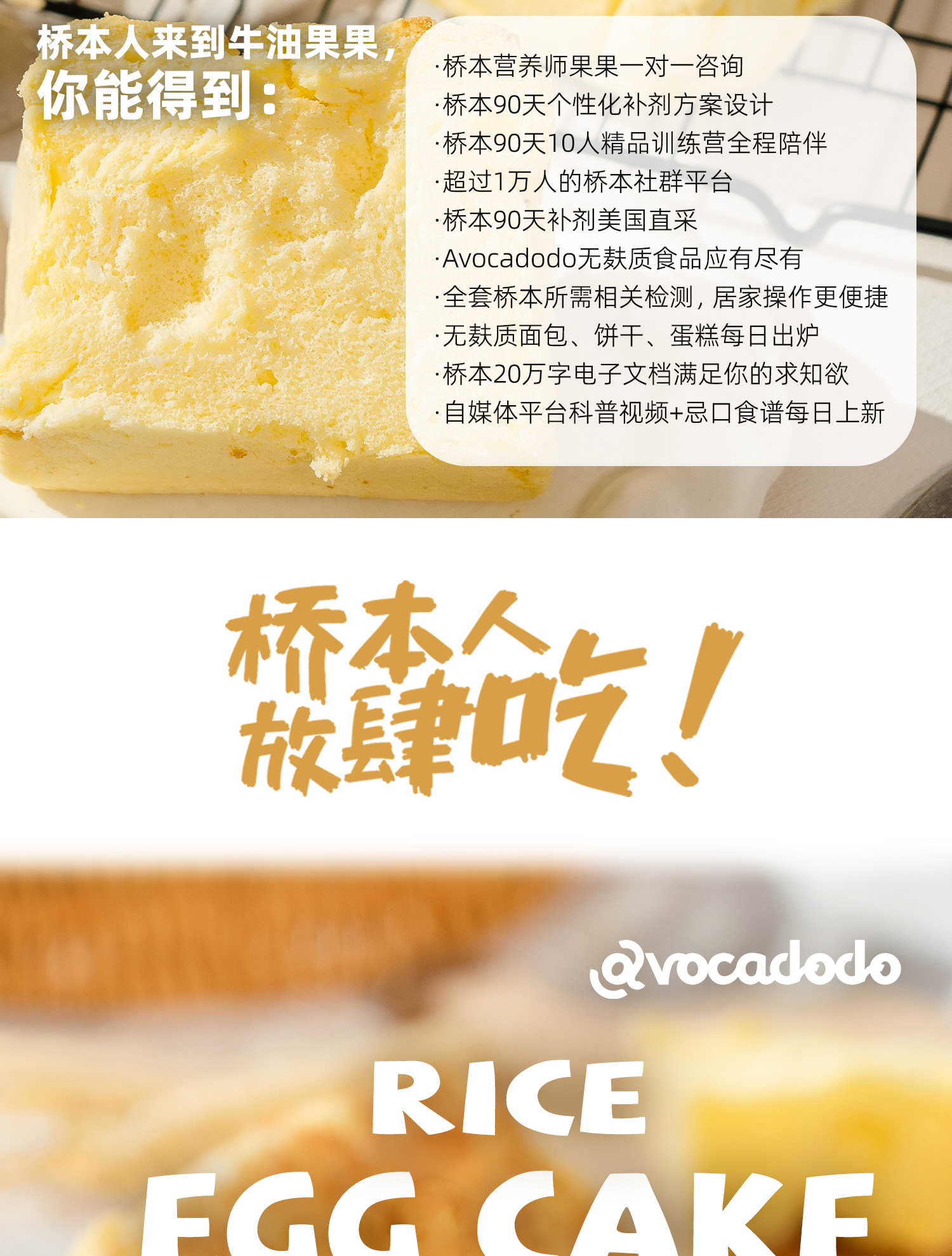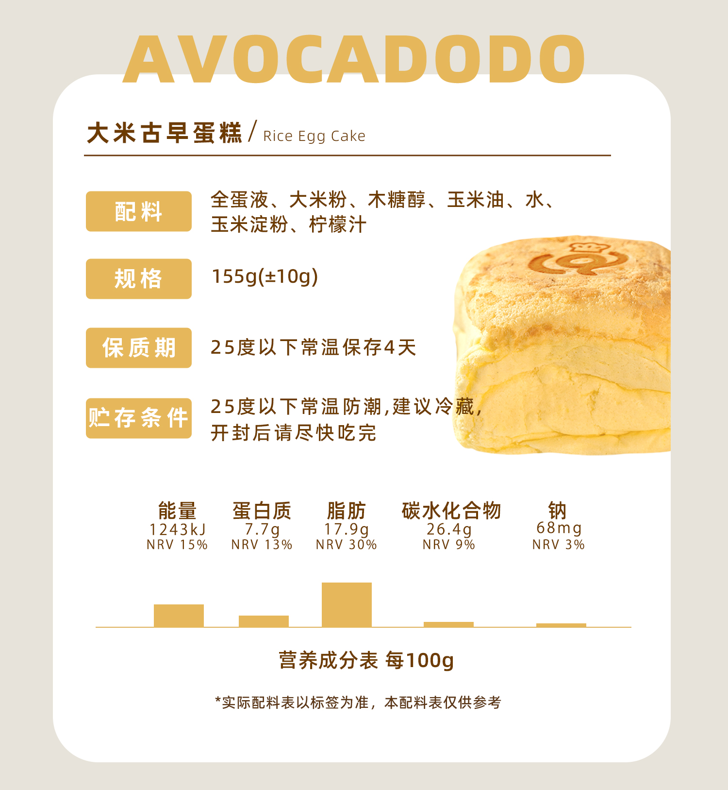 Avocadodo大米古早蛋糕不加奶小麦麸质白砂糖敏宝桥本早餐含蛋