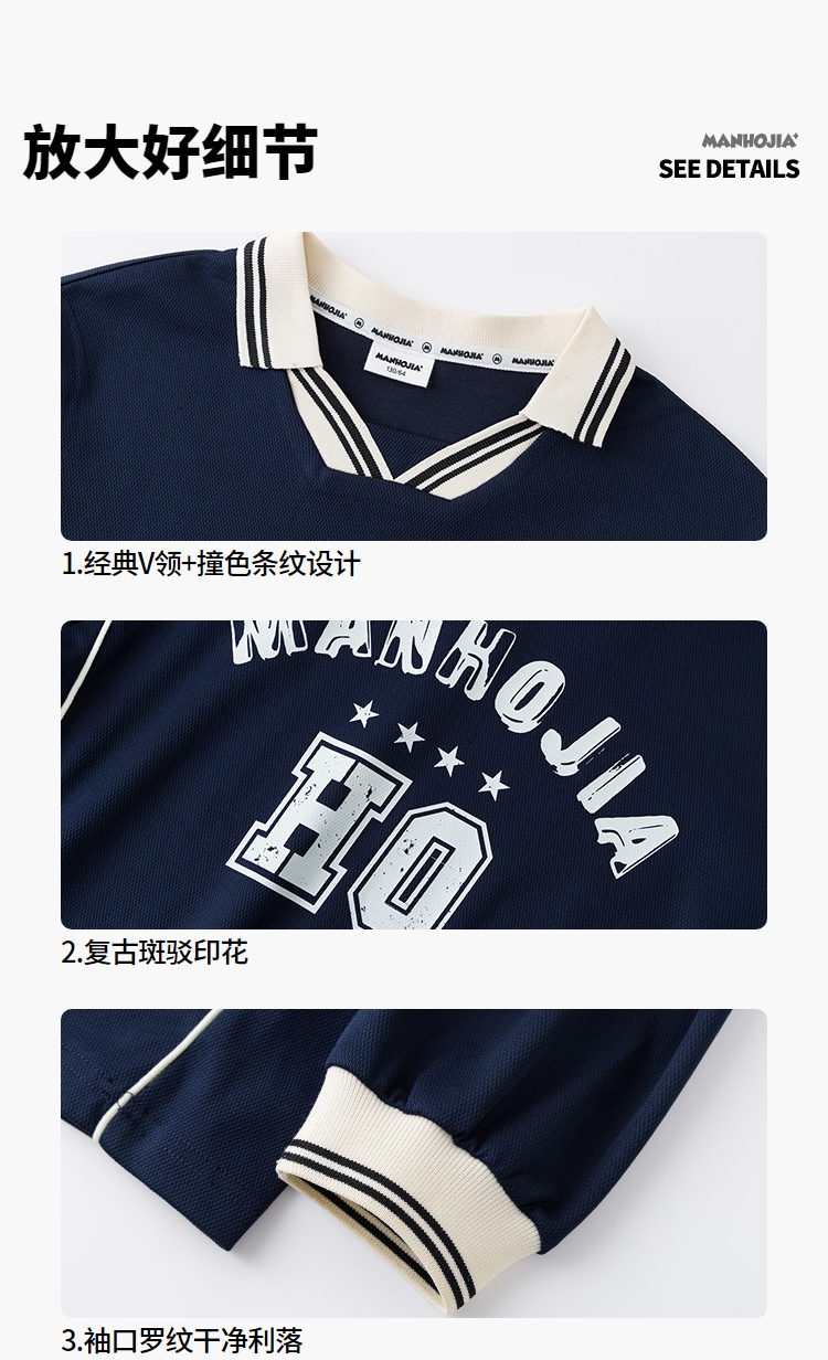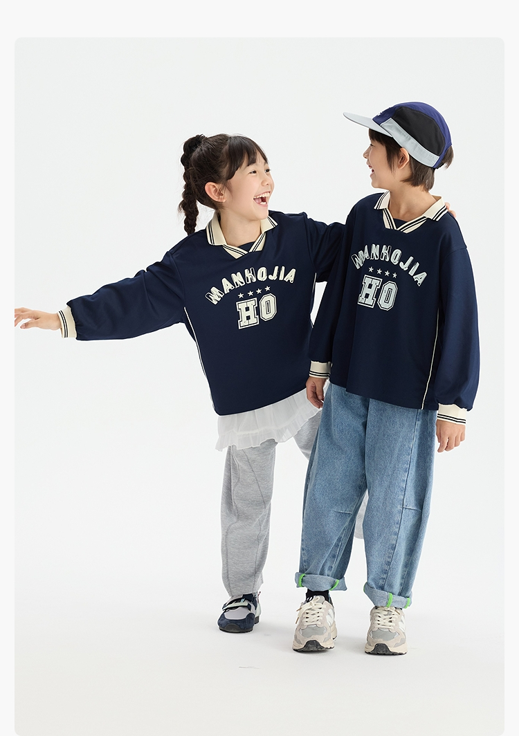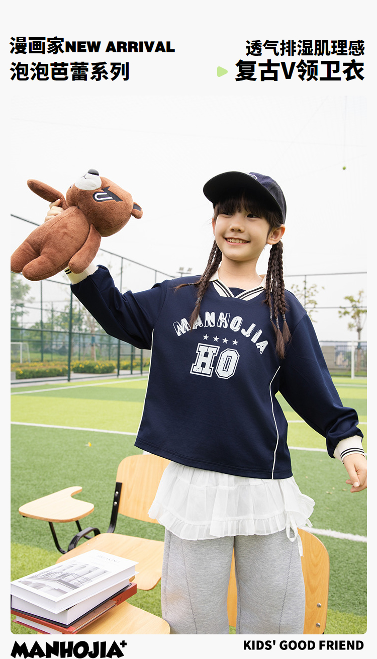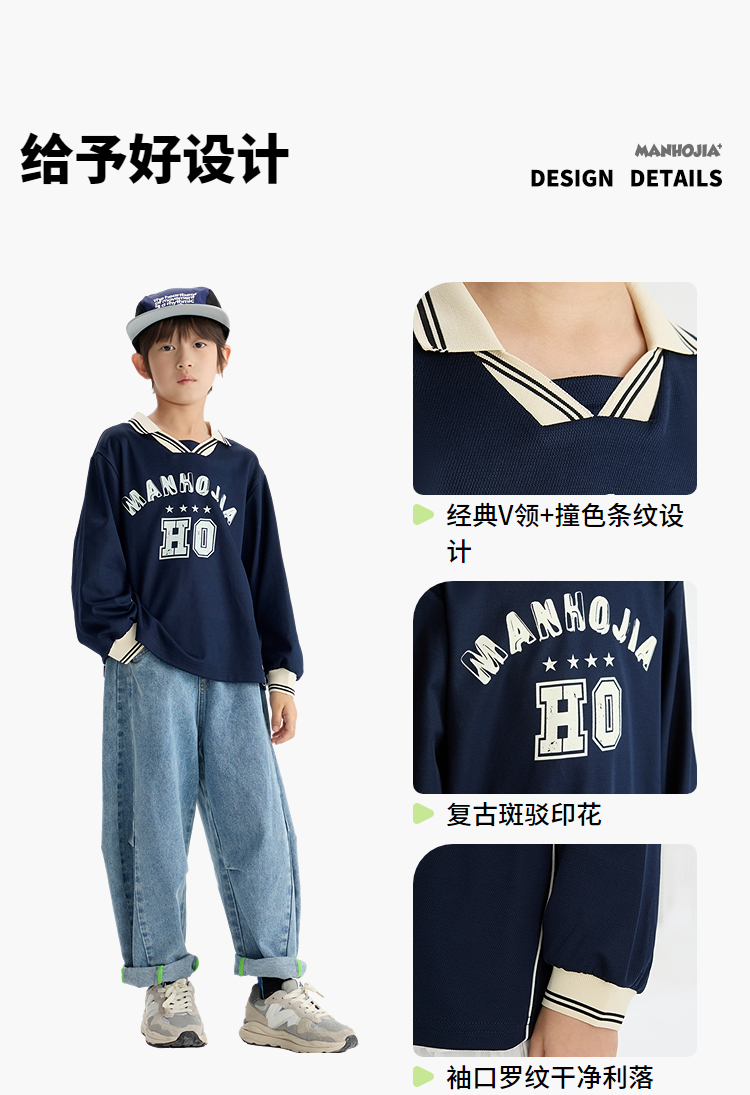 漫画家【复古V领卫衣】儿童卫衣亲肤复古做旧印花运动风卫衣