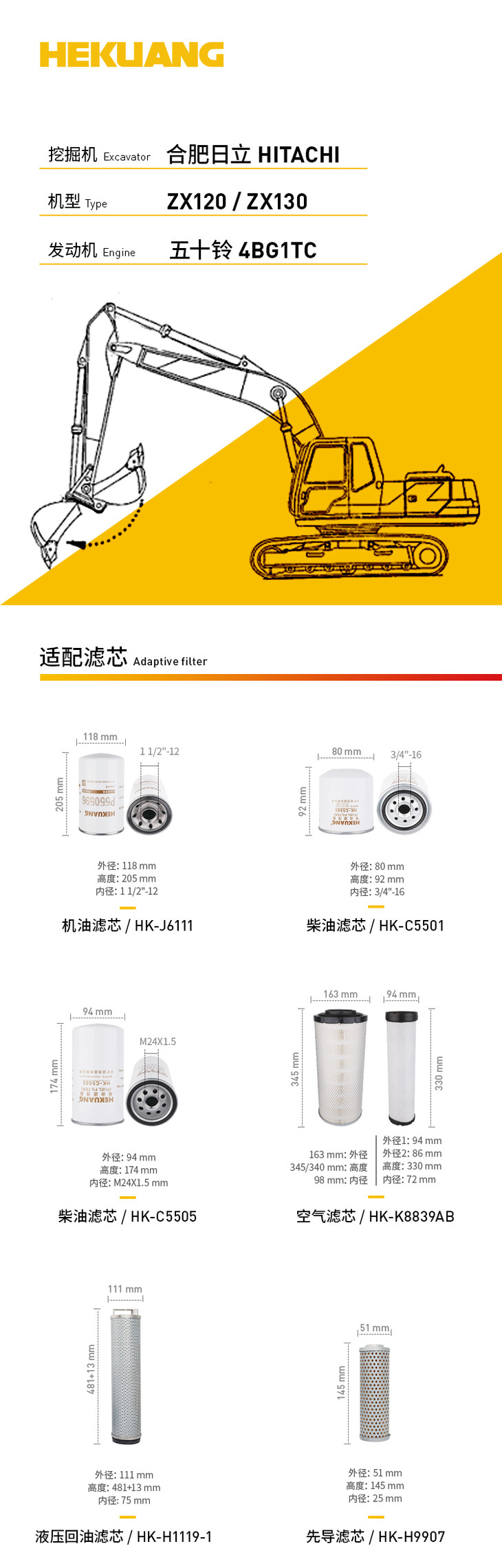 日立ZX120ZX130(五十铃4BG1TC)挖掘机滤芯 机油柴油空气滤芯 液压油先导滤芯