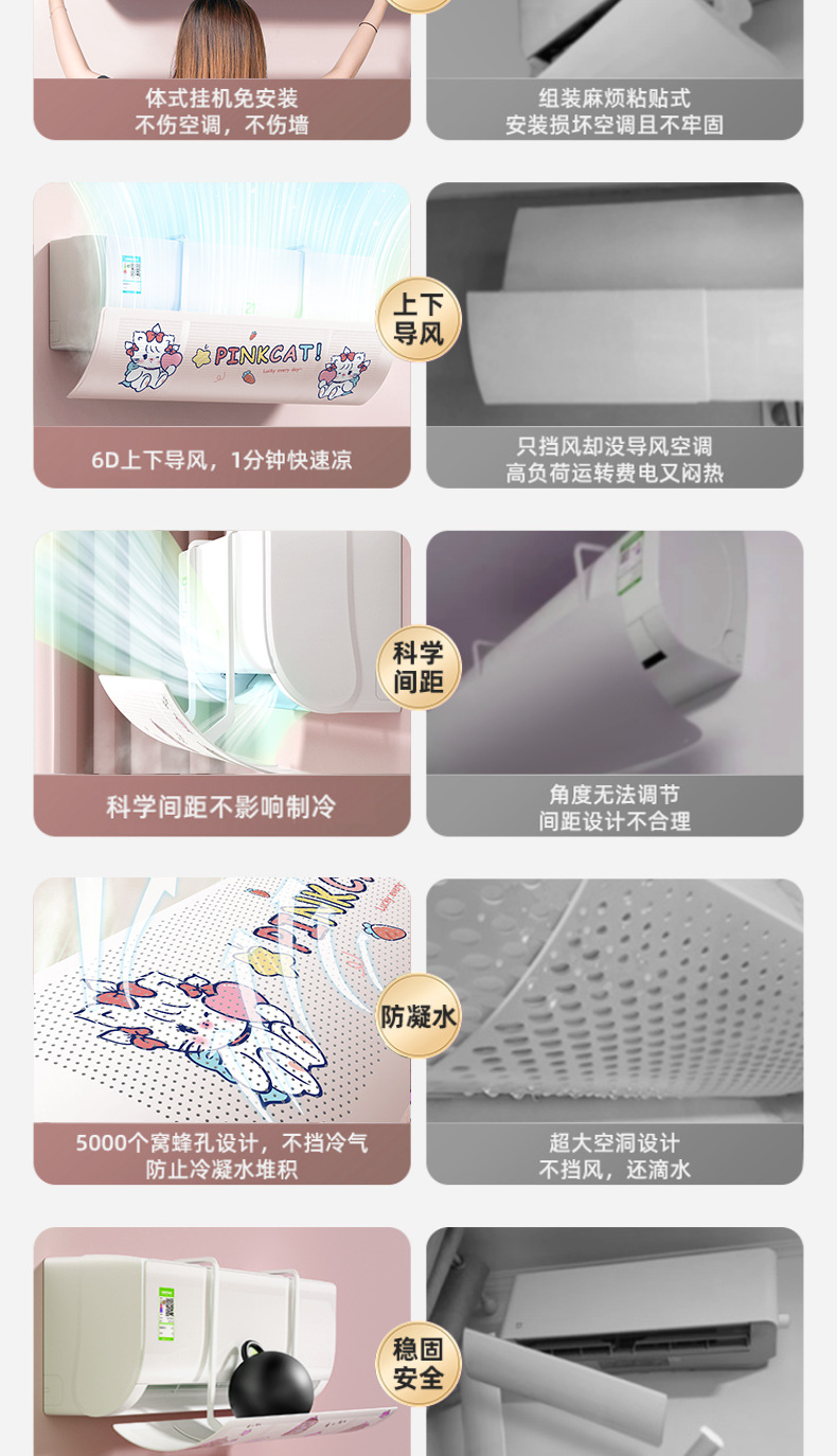 「即挂即用!通用款」卡通可爱空调挡风板 防直吹冷气出风口挡板月子遮导风罩居家日用
