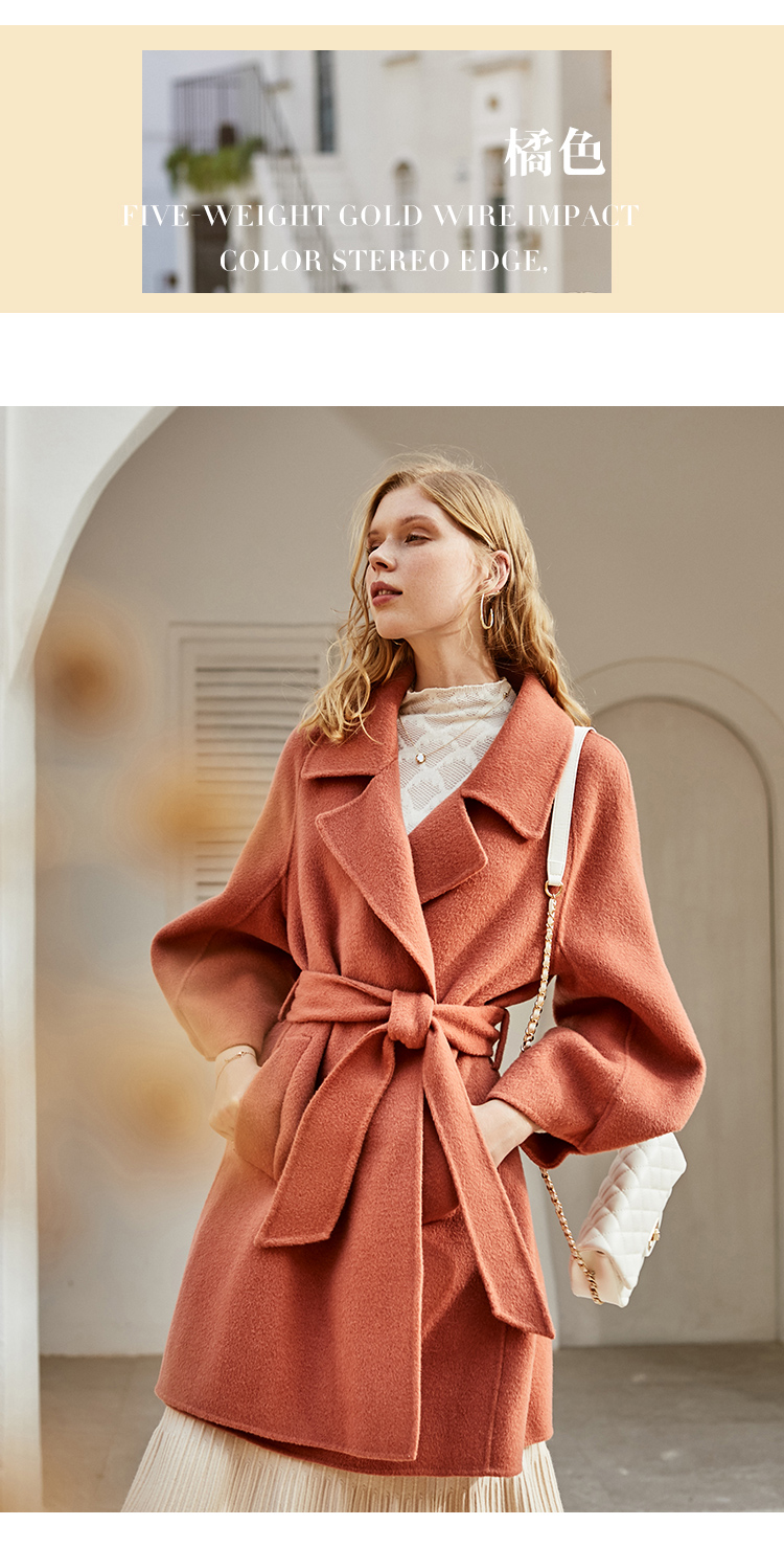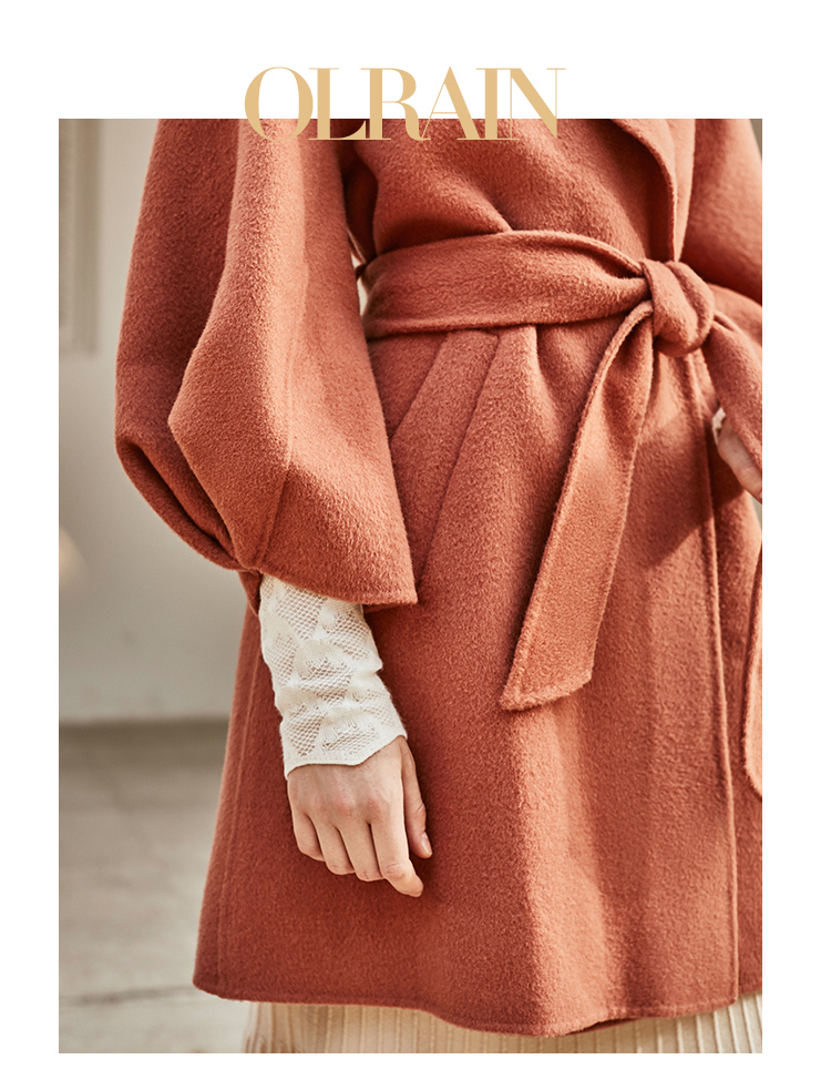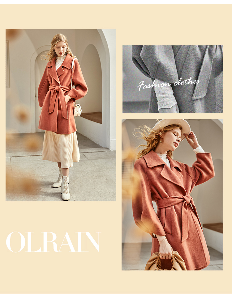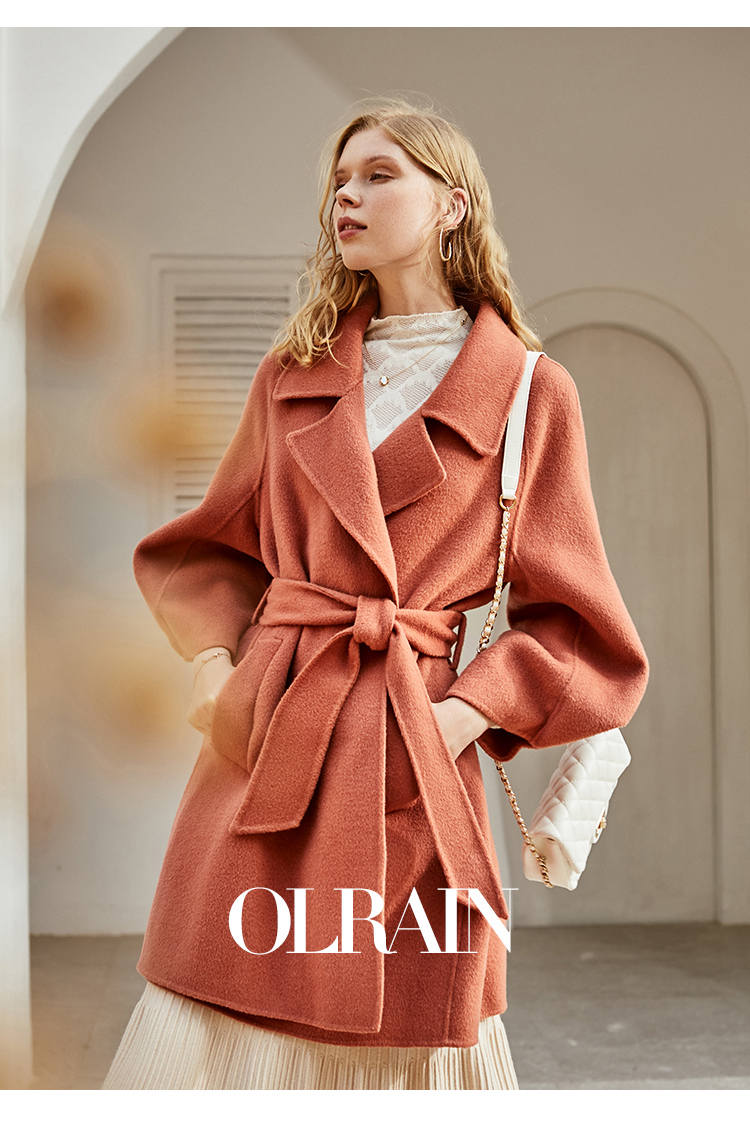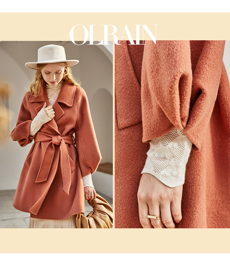 欧芮儿双面呢中长款毛呢外套女2021冬季新款英伦风西装领呢子大衣