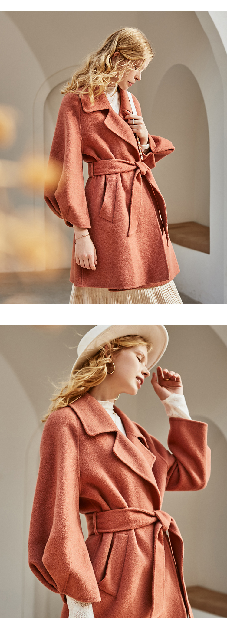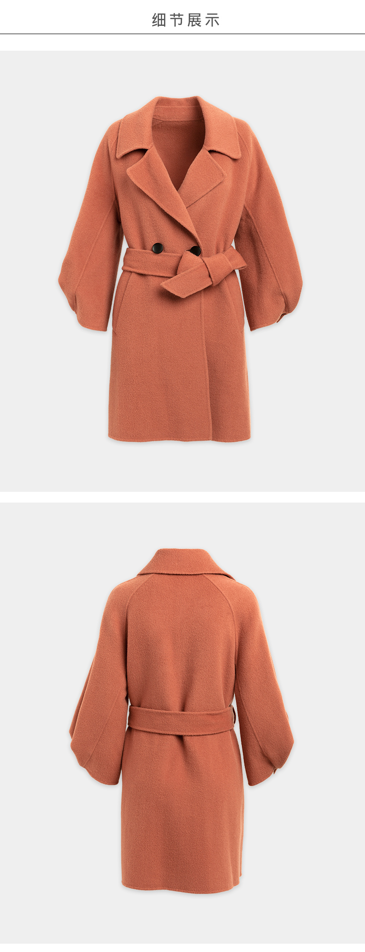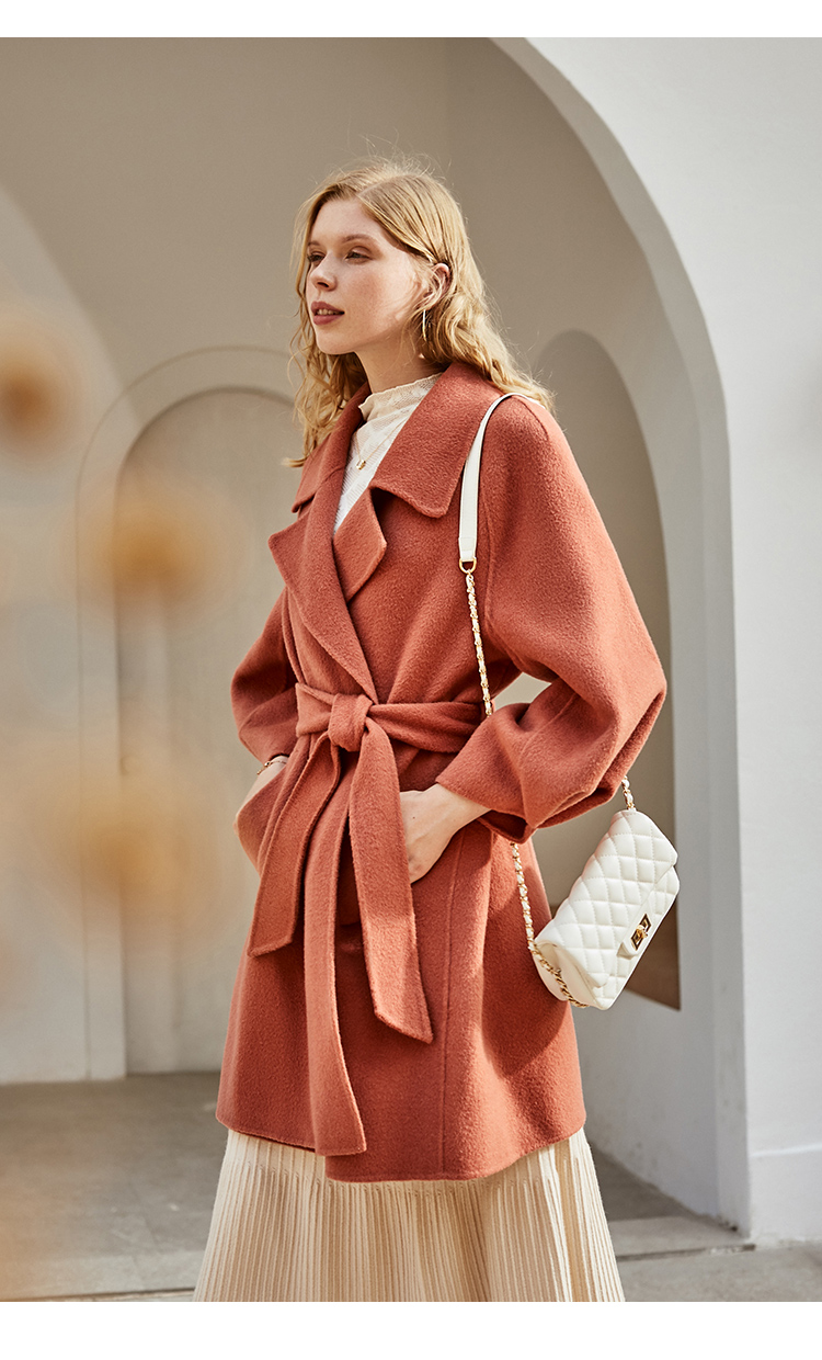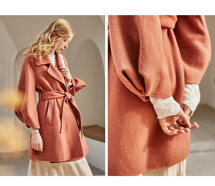 欧芮儿双面呢中长款毛呢外套女2021冬季新款英伦风西装领呢子大衣