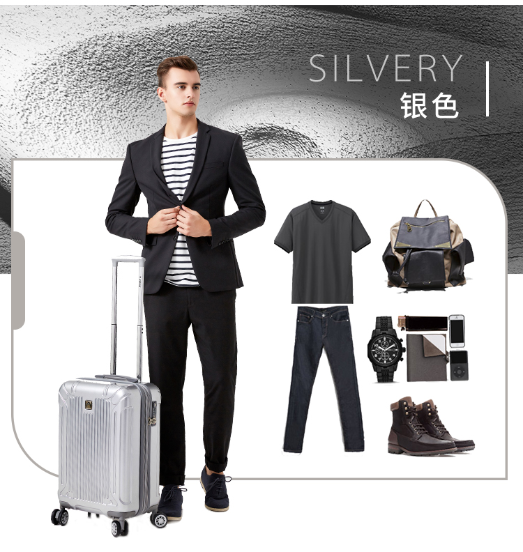 外交官(Diplomat)镜面扩充层箱子登机箱行李箱男女旅行箱万向轮拉杆箱密码箱TC-6012 20英寸 银色