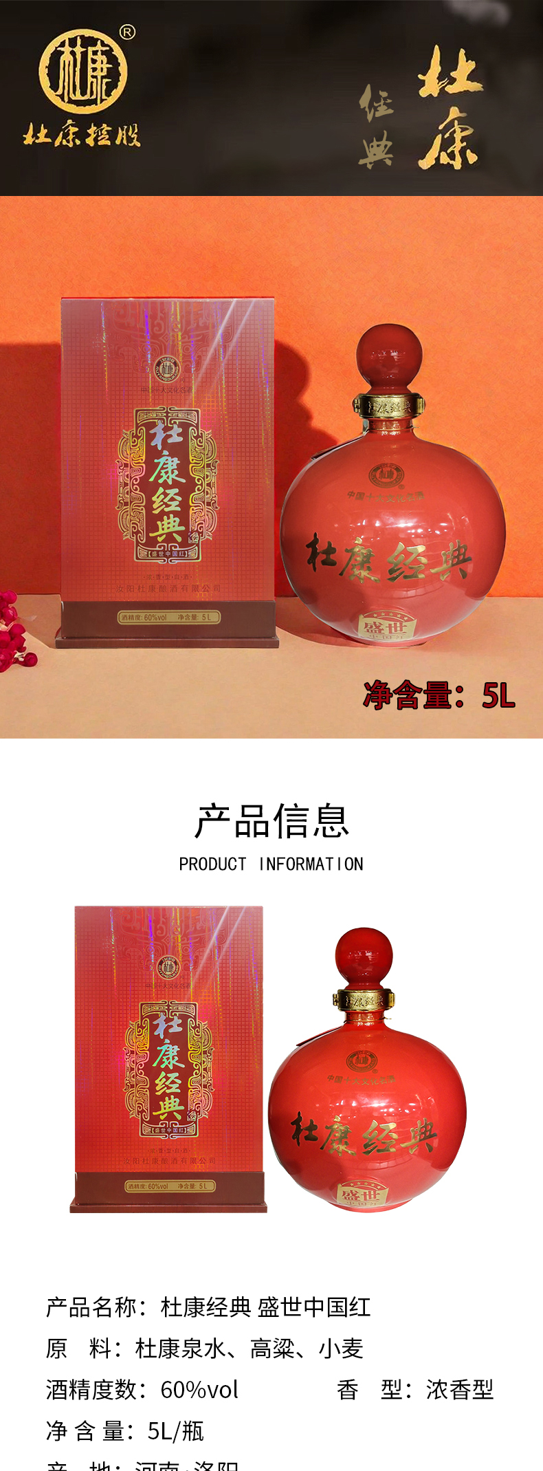 【浓香型】杜康经典盛世中国红5L 60度