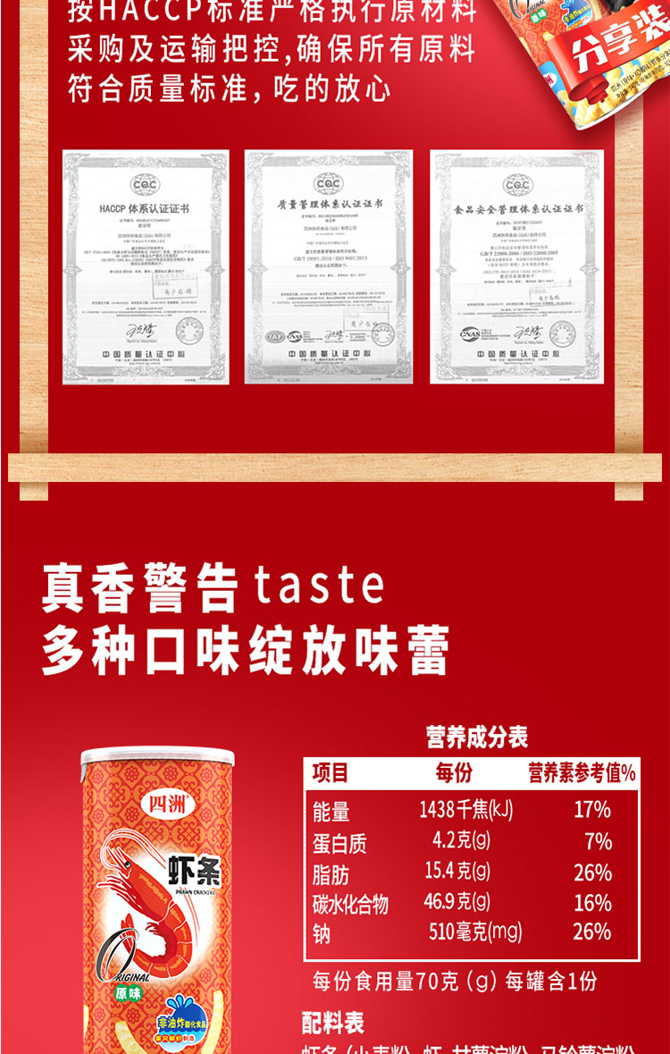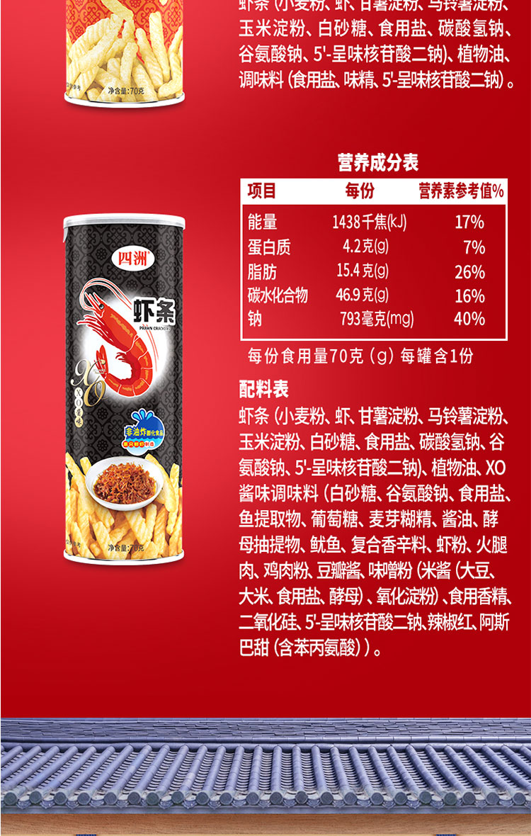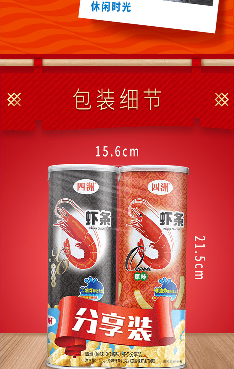 四洲(原味+XO酱味)虾条分享装(筒装)140g