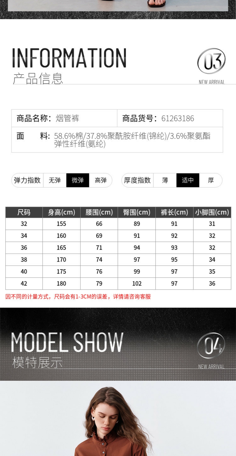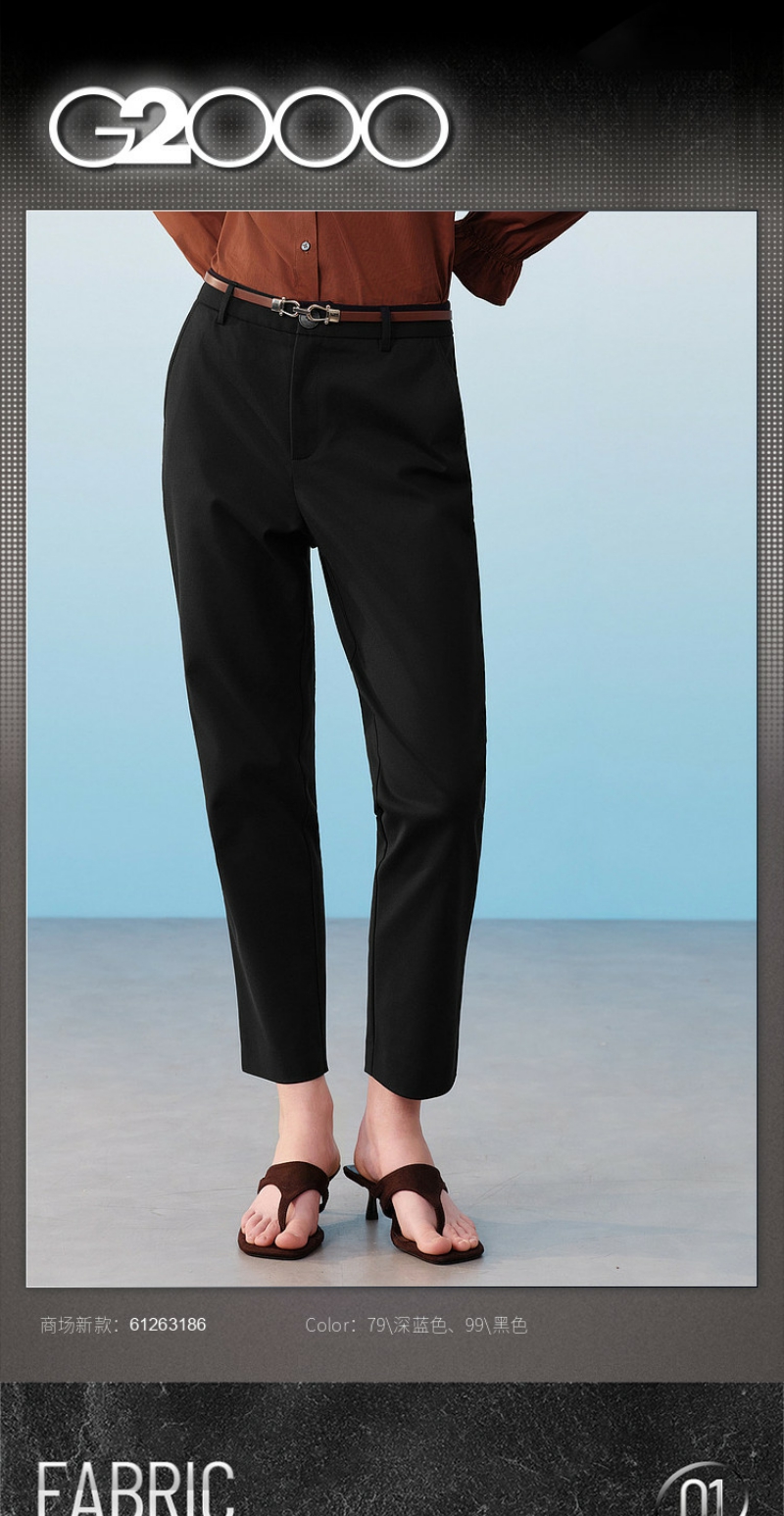 G2000女装SS26商场新款【配赠腰带/棉质弹性/烟管裤】百搭休闲裤61263186