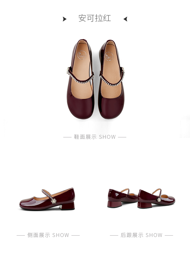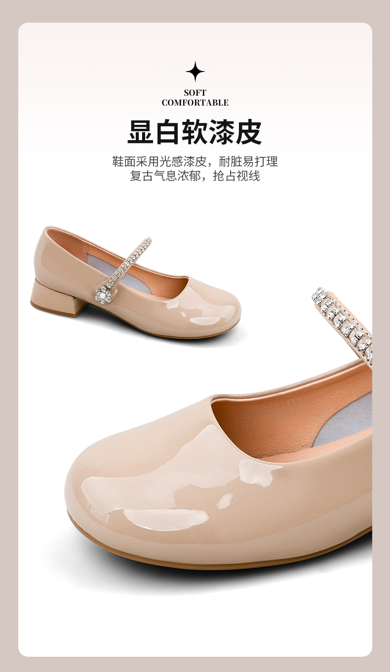 Safiya/索菲娅2025法式浅口一字带闪钻气质百搭甜美玛丽珍鞋SFD3111411