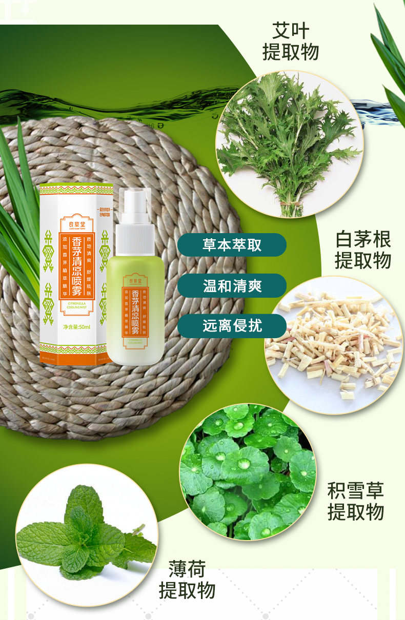 #有香茅不怕咬【良草堂香茅清凉喷雾50ml】海南天然植萃草本精华 成人清凉润肤