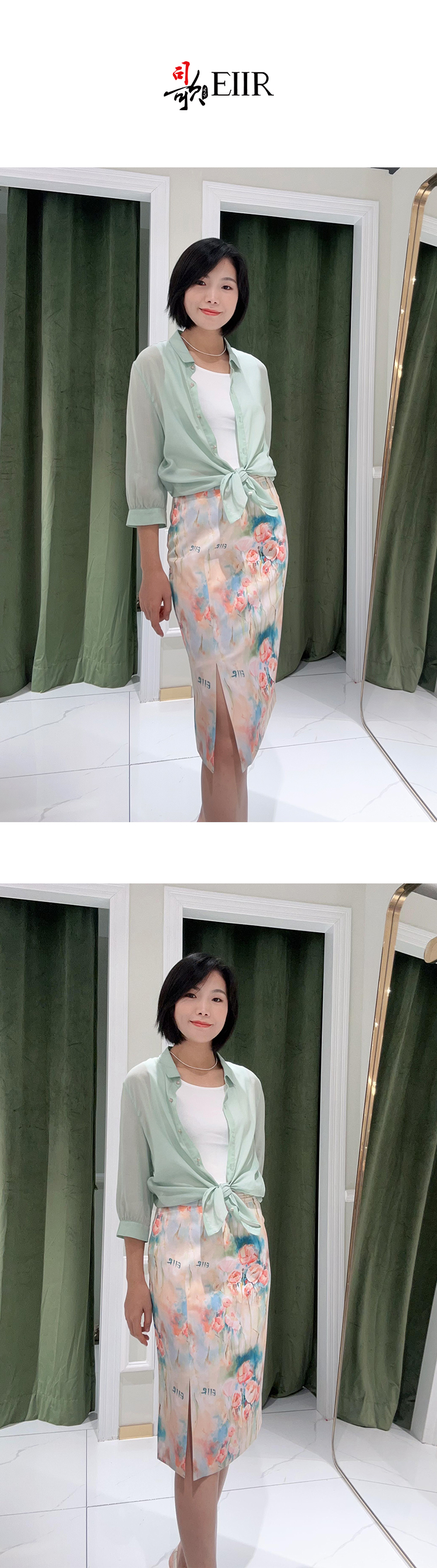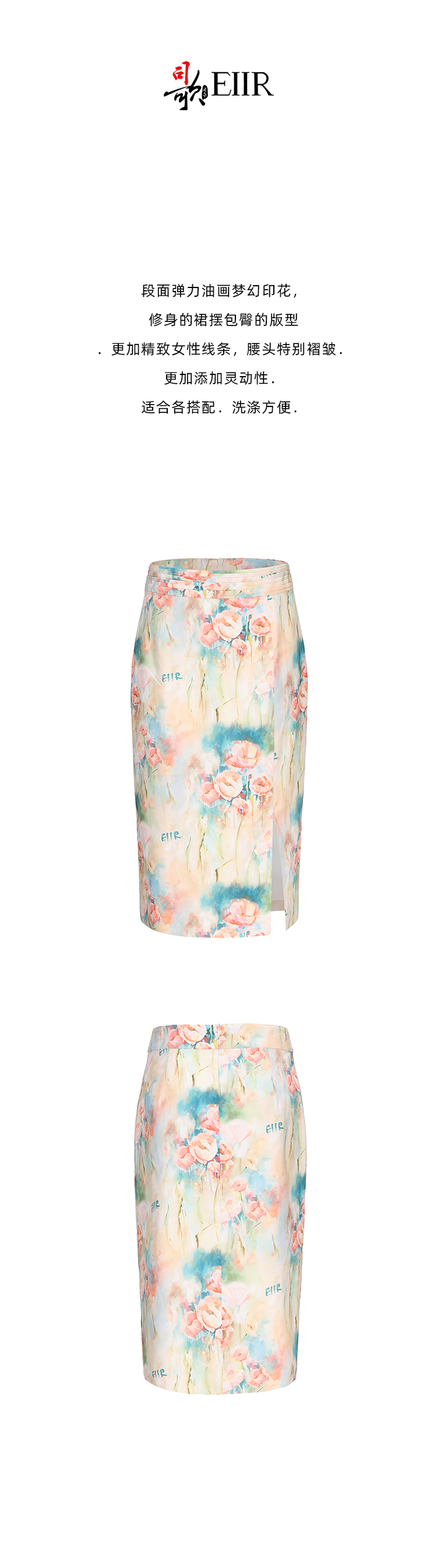 EIIR司歌印花包身裙开叉半身裙EC881405