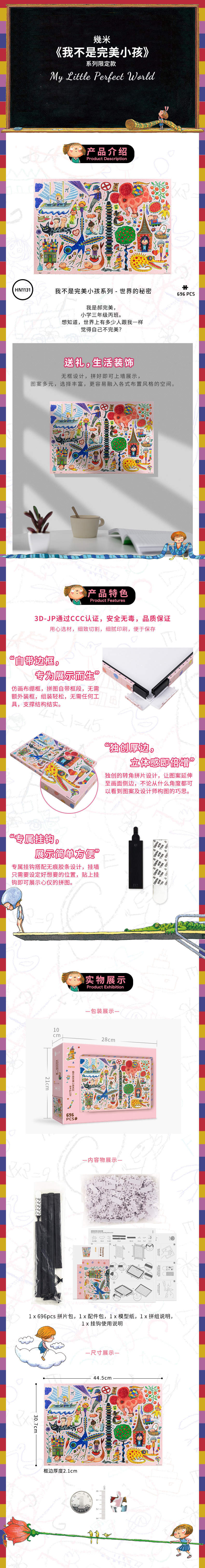 696片 无框平面拼图 塑料拼图 HN1131 我不是完美小孩系列-世界的秘密