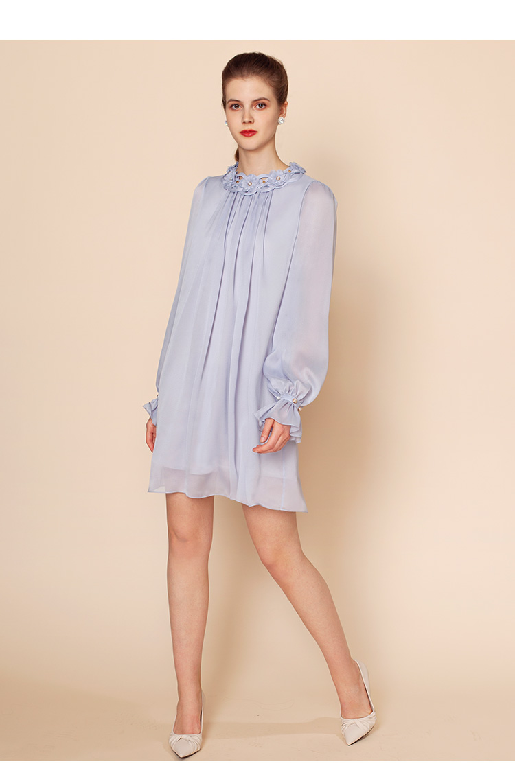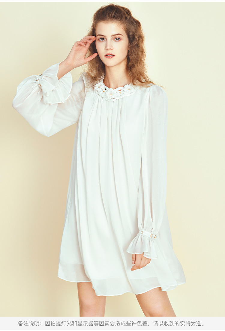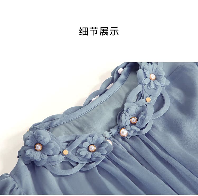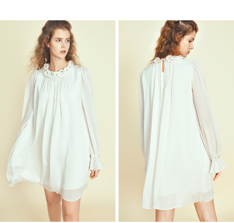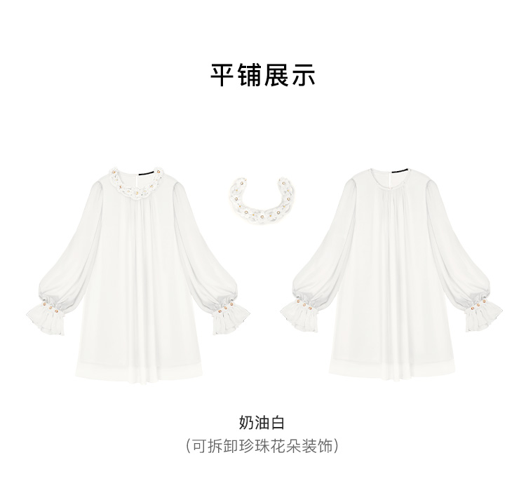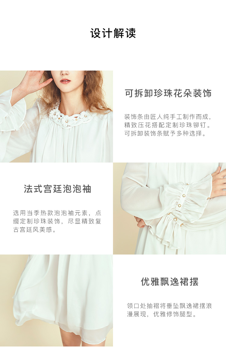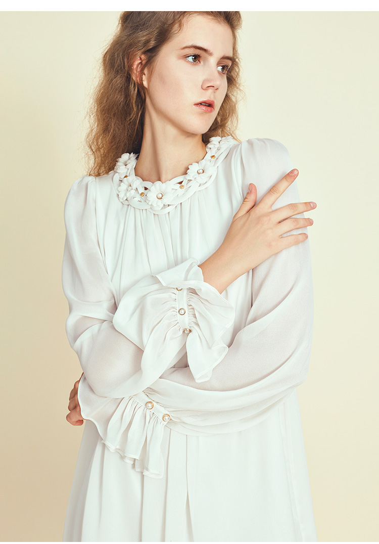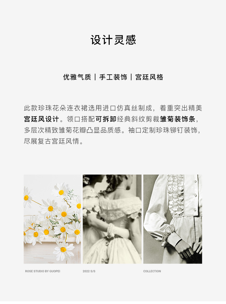 RSG郭培成衣品牌原创设计珍珠领口花朵连衣裙南法假日
