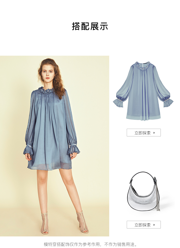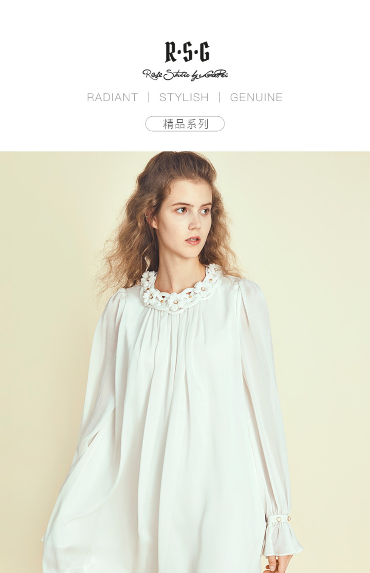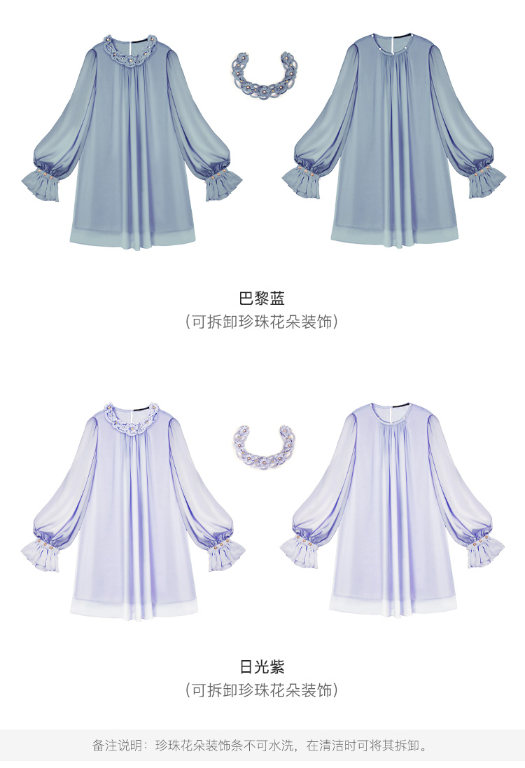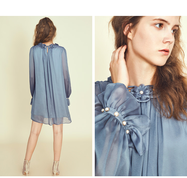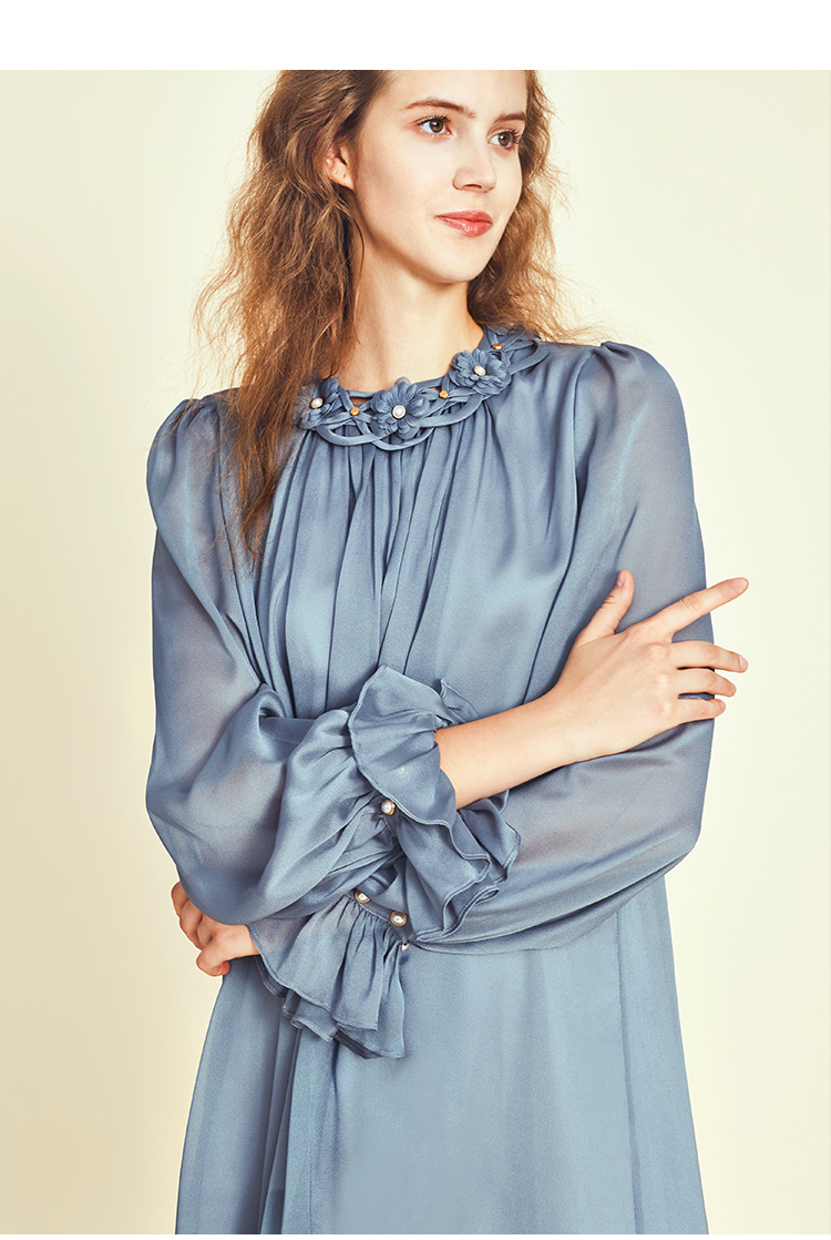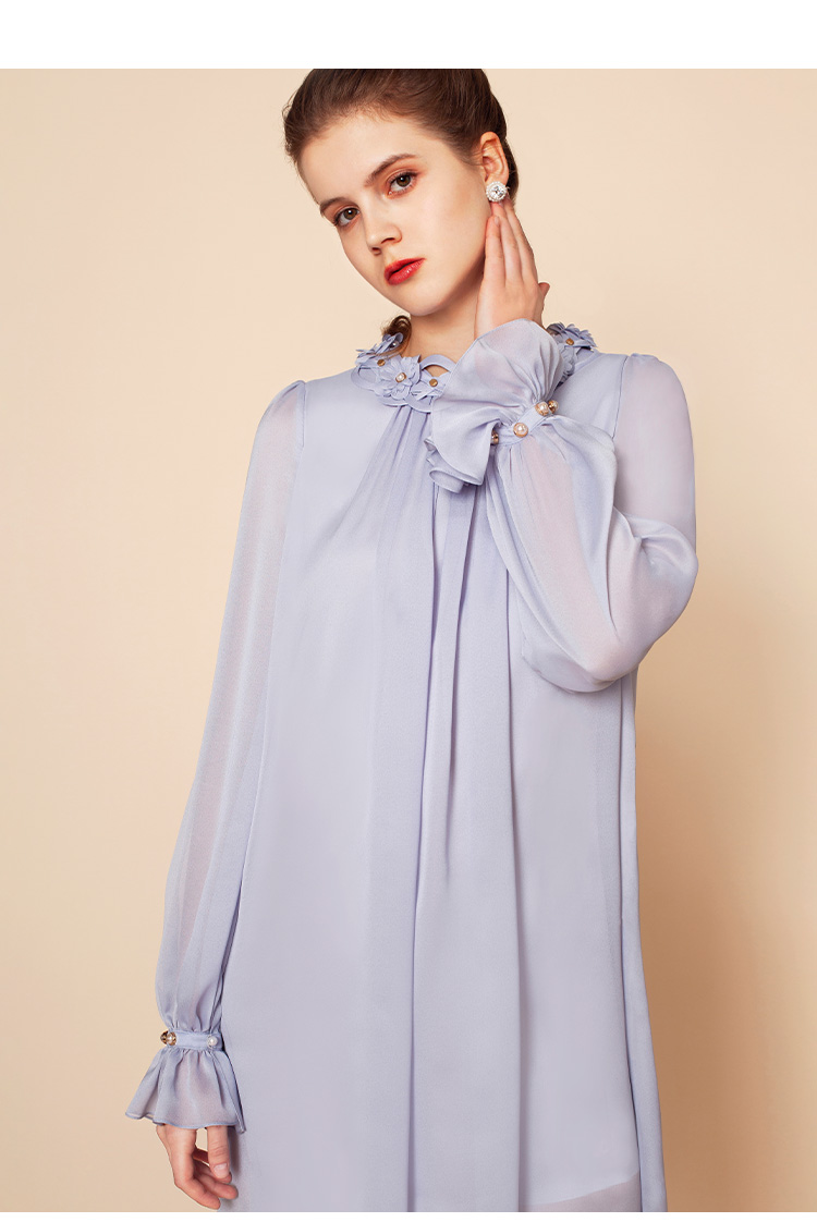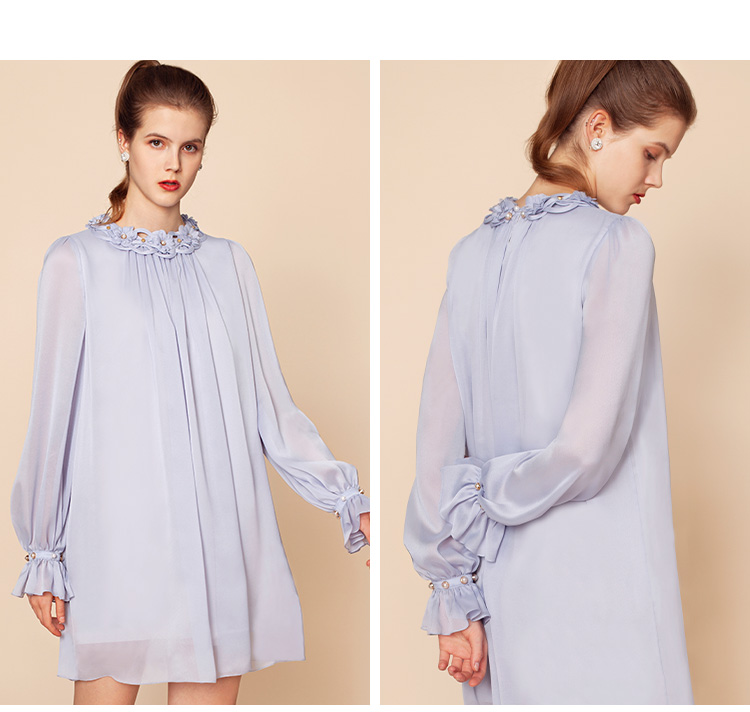RSG郭培成衣品牌原创设计珍珠领口花朵连衣裙南法假日