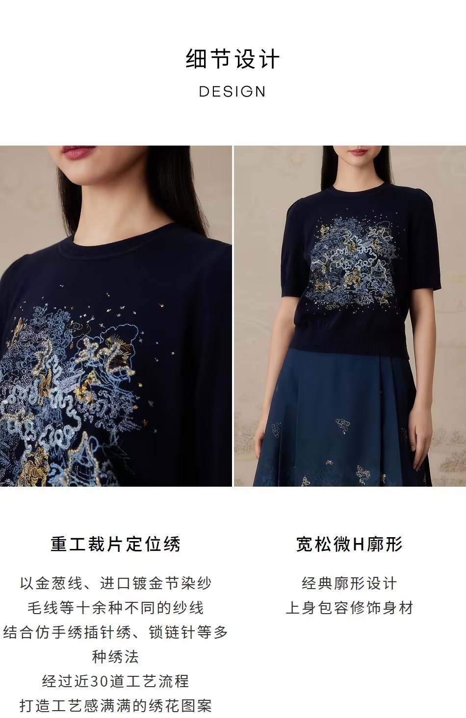 VGRASS维格娜丝24年秋季重工定位绣针织衫