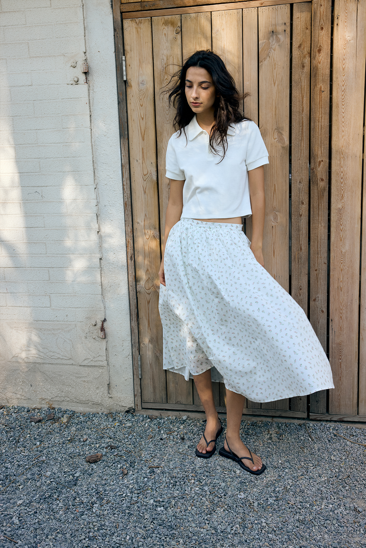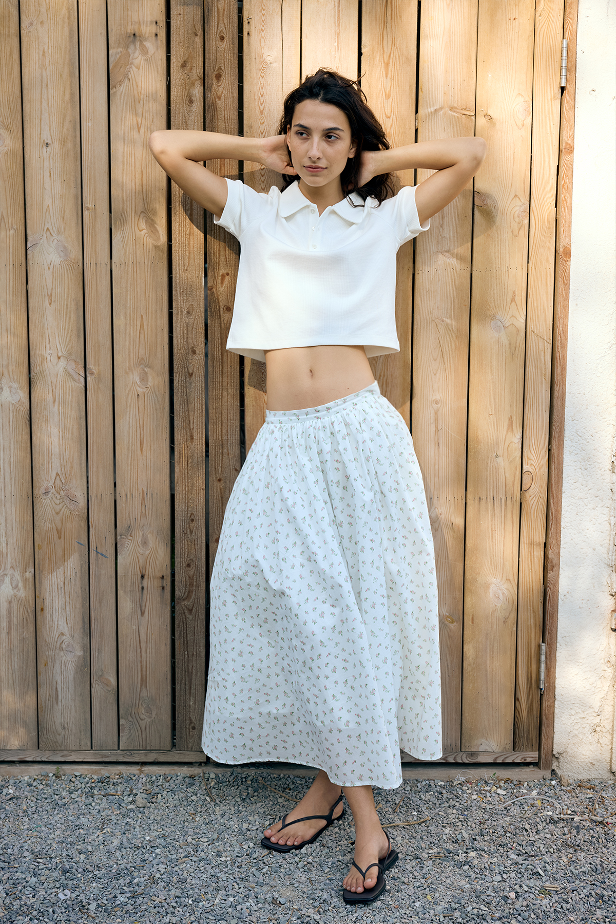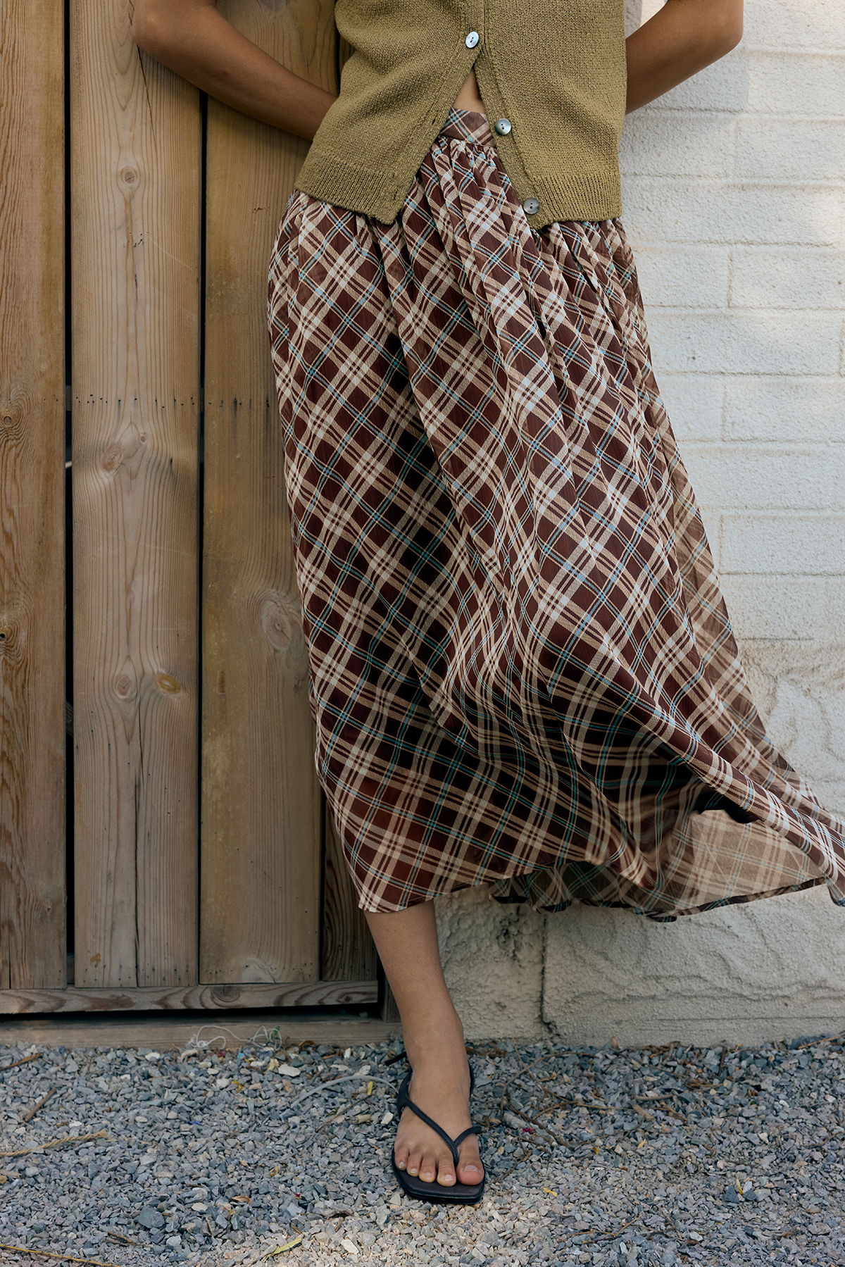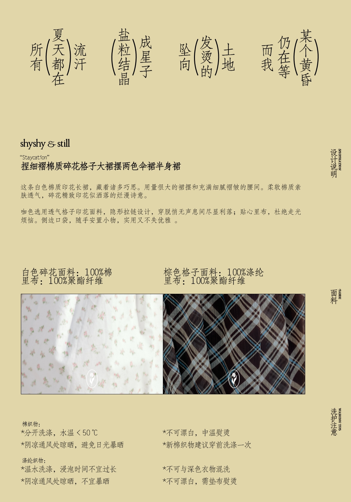 shyshystill/shy202502080/捏细褶棉质碎花格子大裙摆两色伞裙
