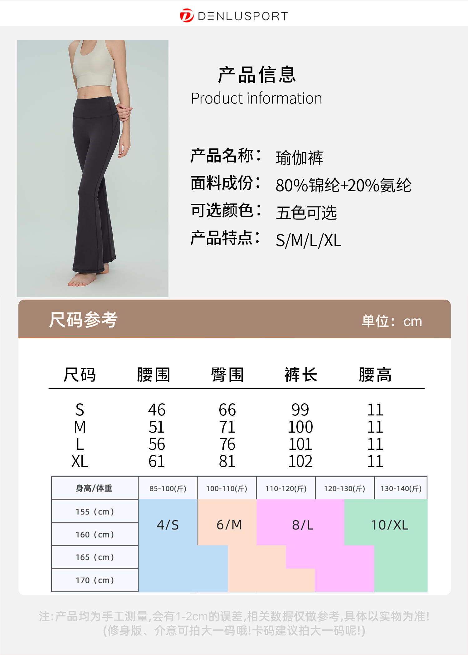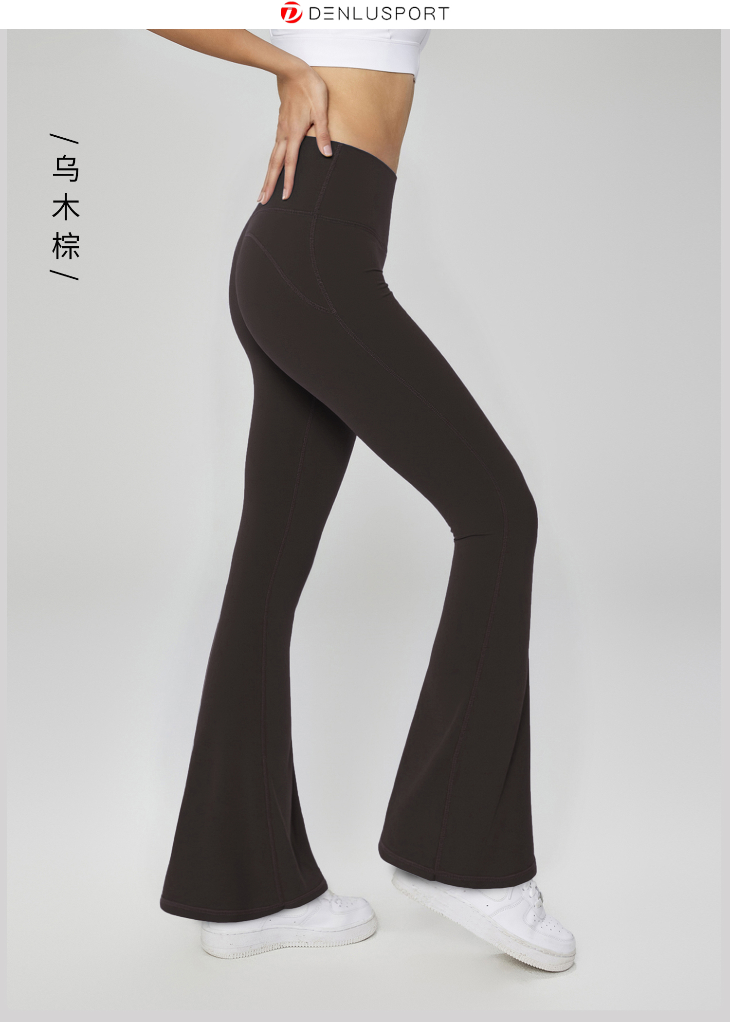 新款高腰喇叭裤女士运动微喇紧身裤30″芯吸DENLUS DK95101#
