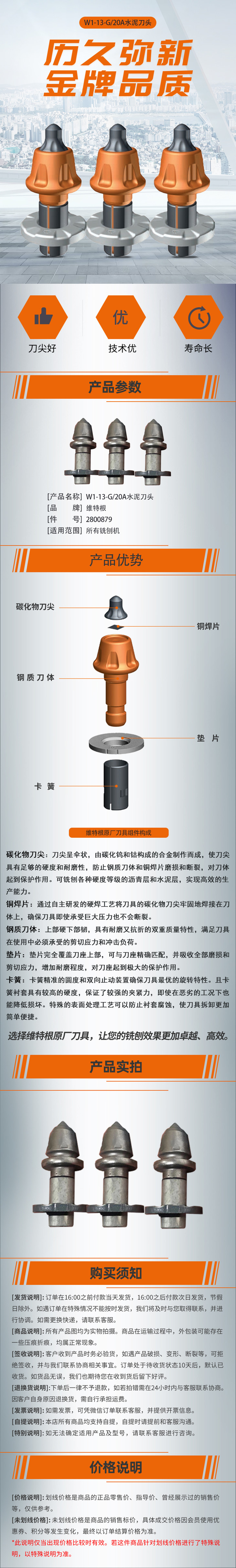 【W1-13-G/20A水泥刀头2800879一箱】 适用于铣刨机