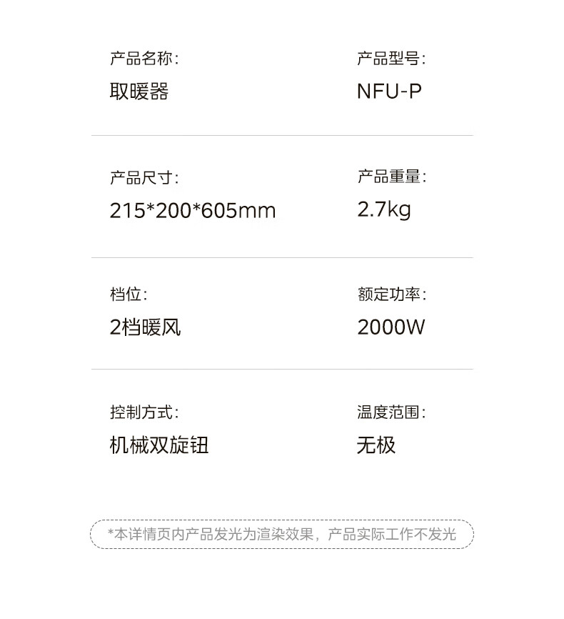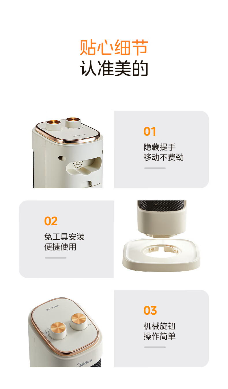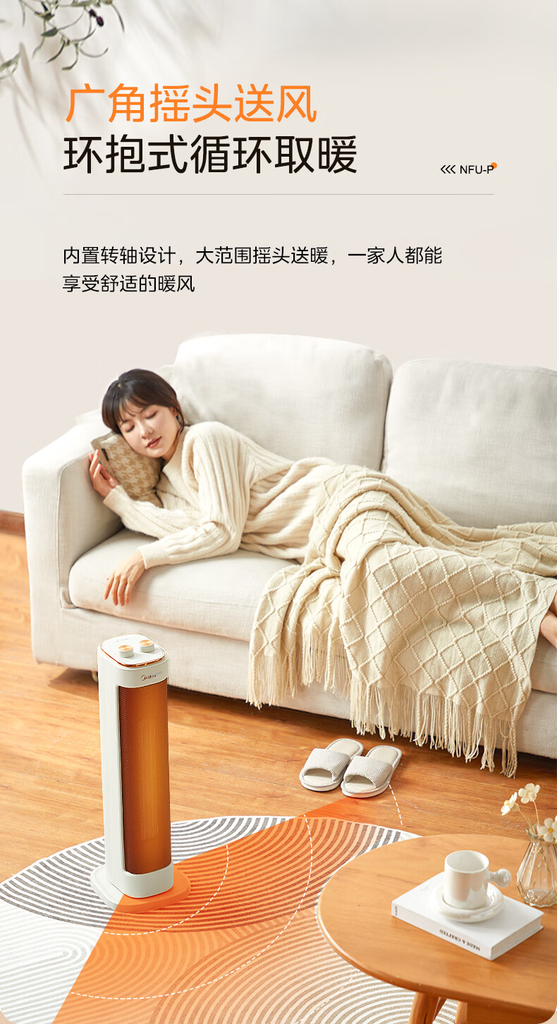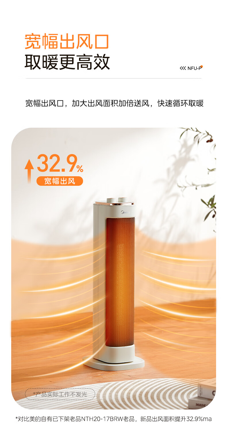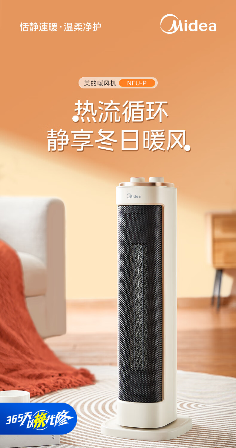 美的 NFU-P 电暖器暖风PTC陶瓷发热体倾倒断电可拆洗滤网轻音低噪(创)