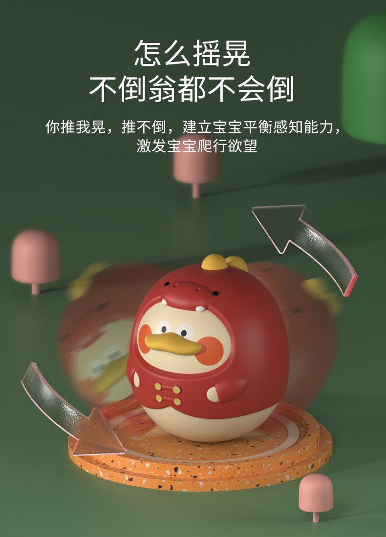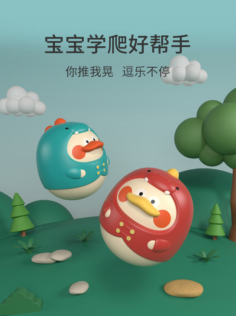 恐龙鸭婴儿不倒翁玩具1周岁宝宝安抚可咬益智早教摇铃