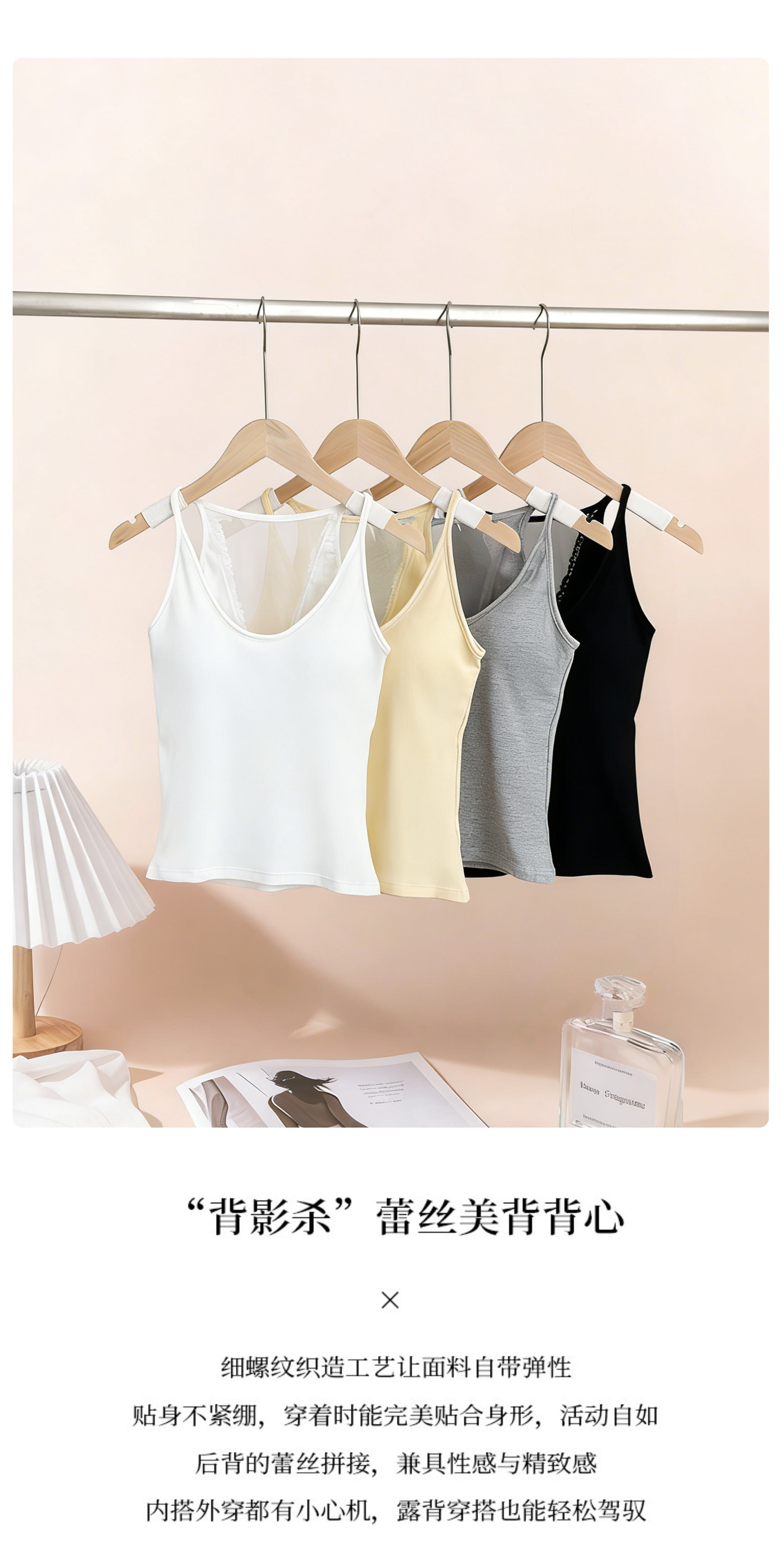 解锁氛围感穿搭【QINGFAN 法式性感U领蕾丝背心】小心机设计感 温柔又性感 螺纹棉亲肤透气 春夏内搭外穿显瘦 内搭衬衫 外搭牛仔西装LYZ
