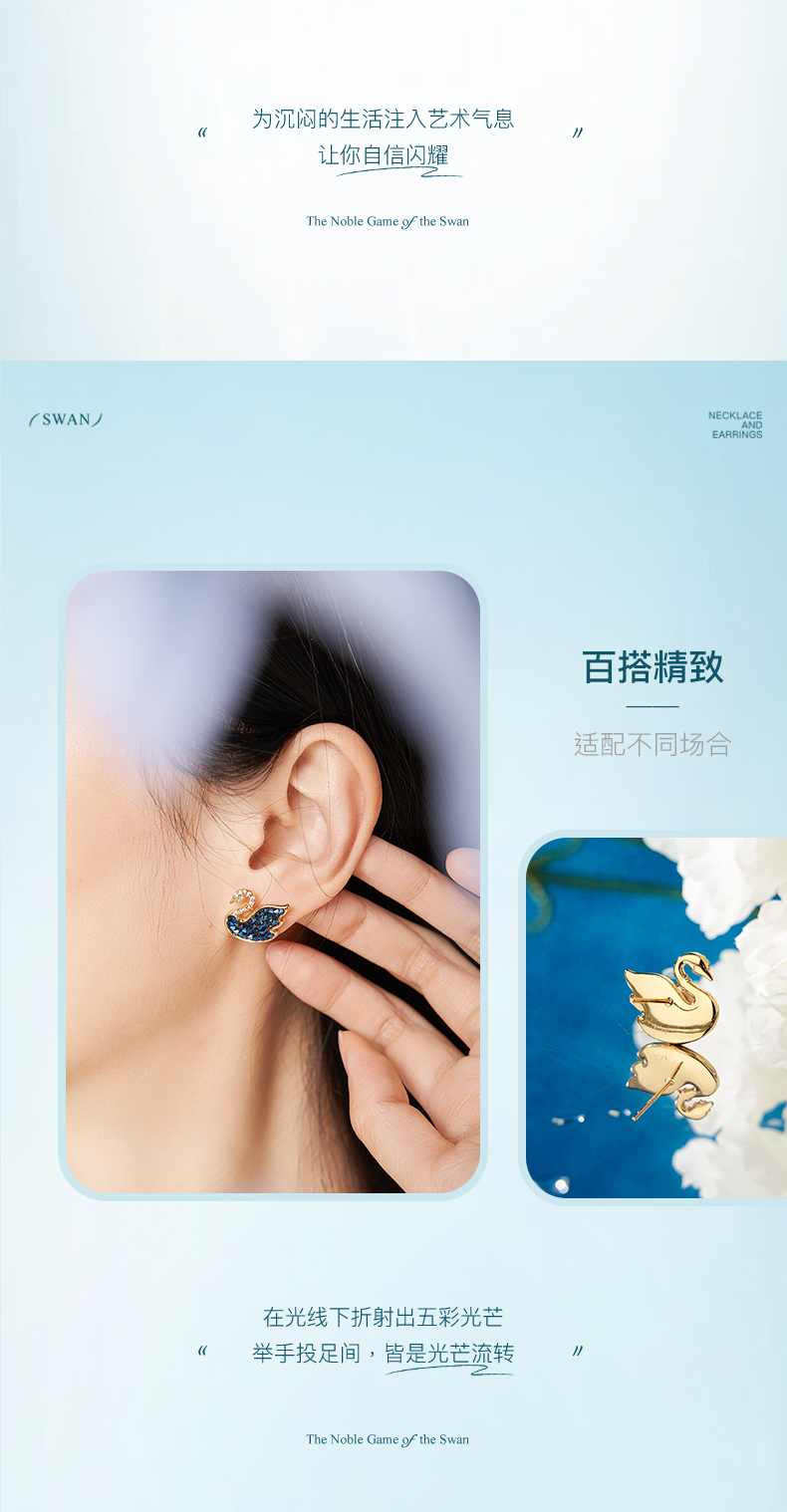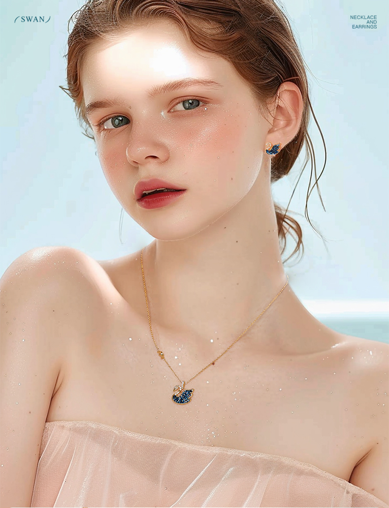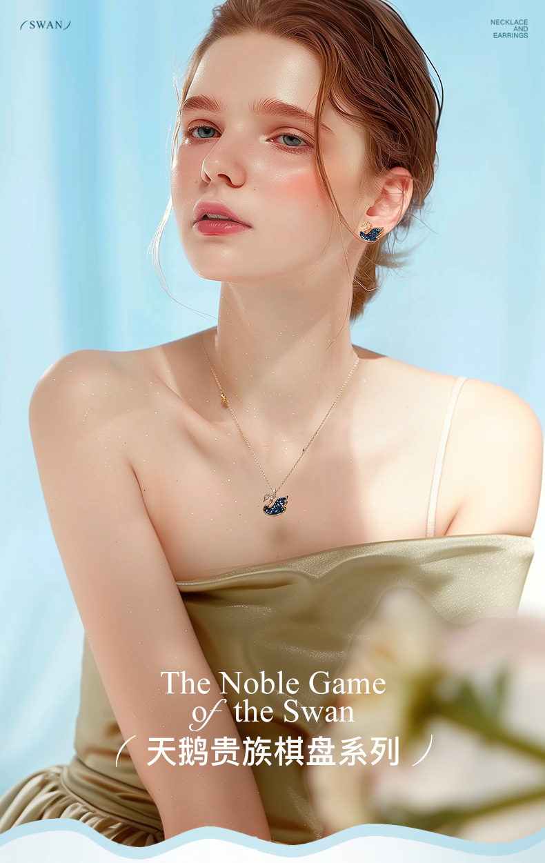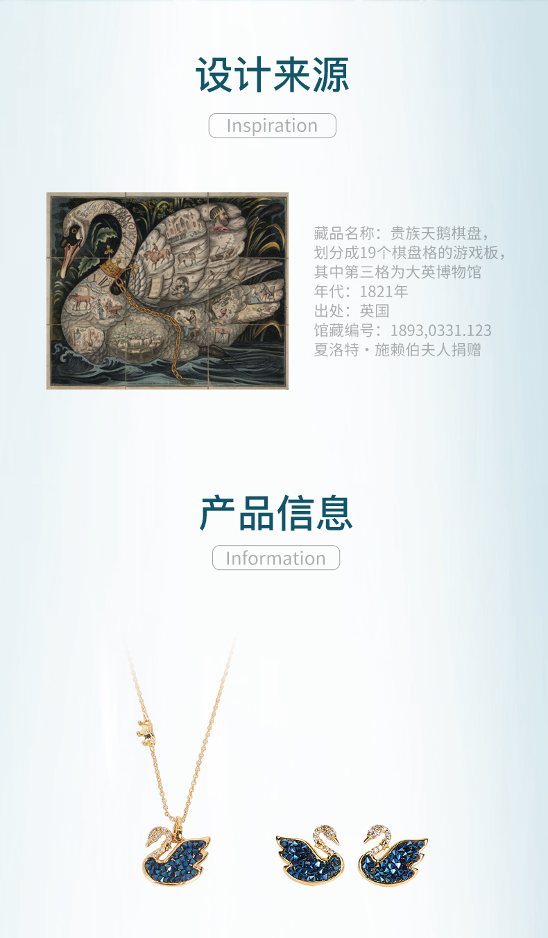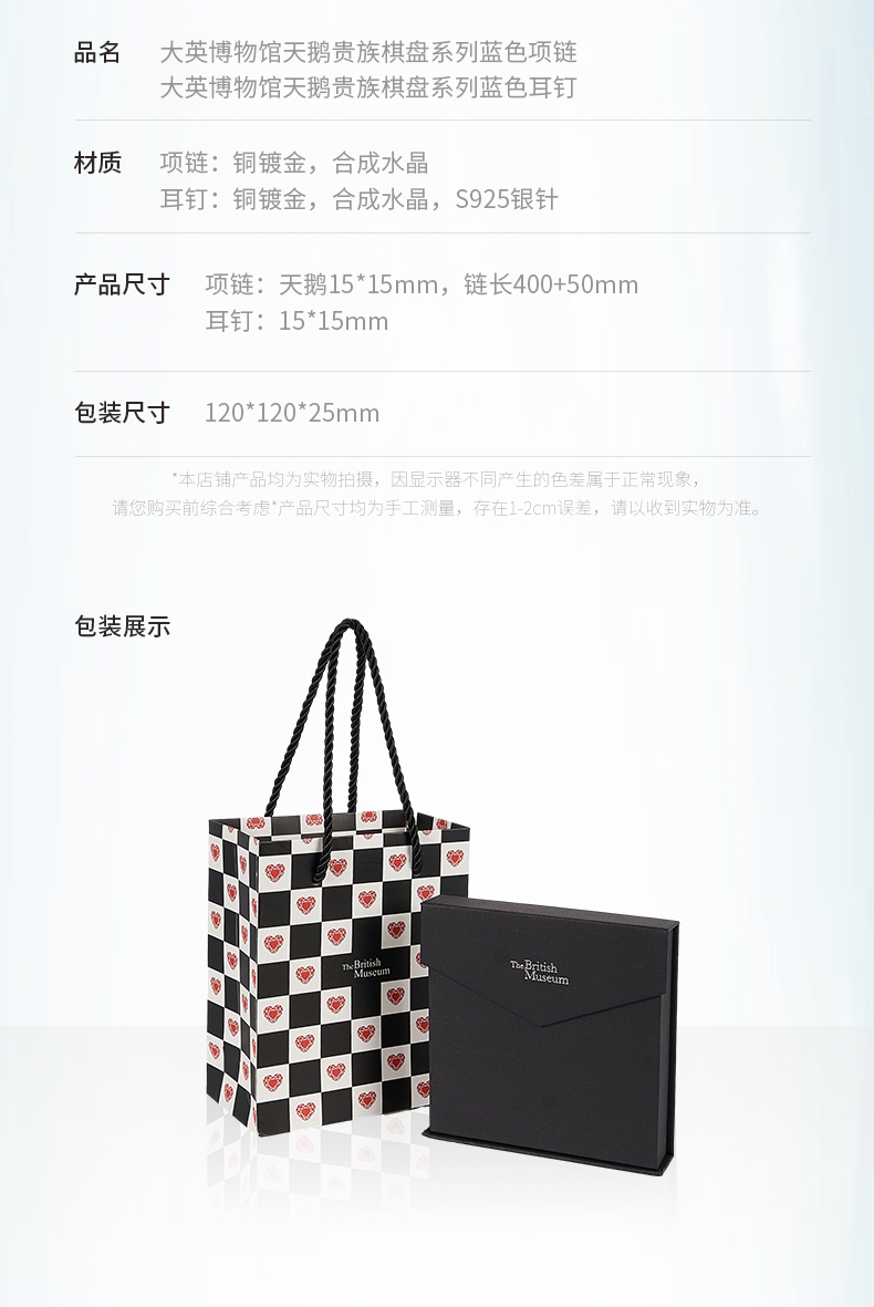 大英博物馆 天鹅贵族棋盘系列 蓝色项链 耳环
